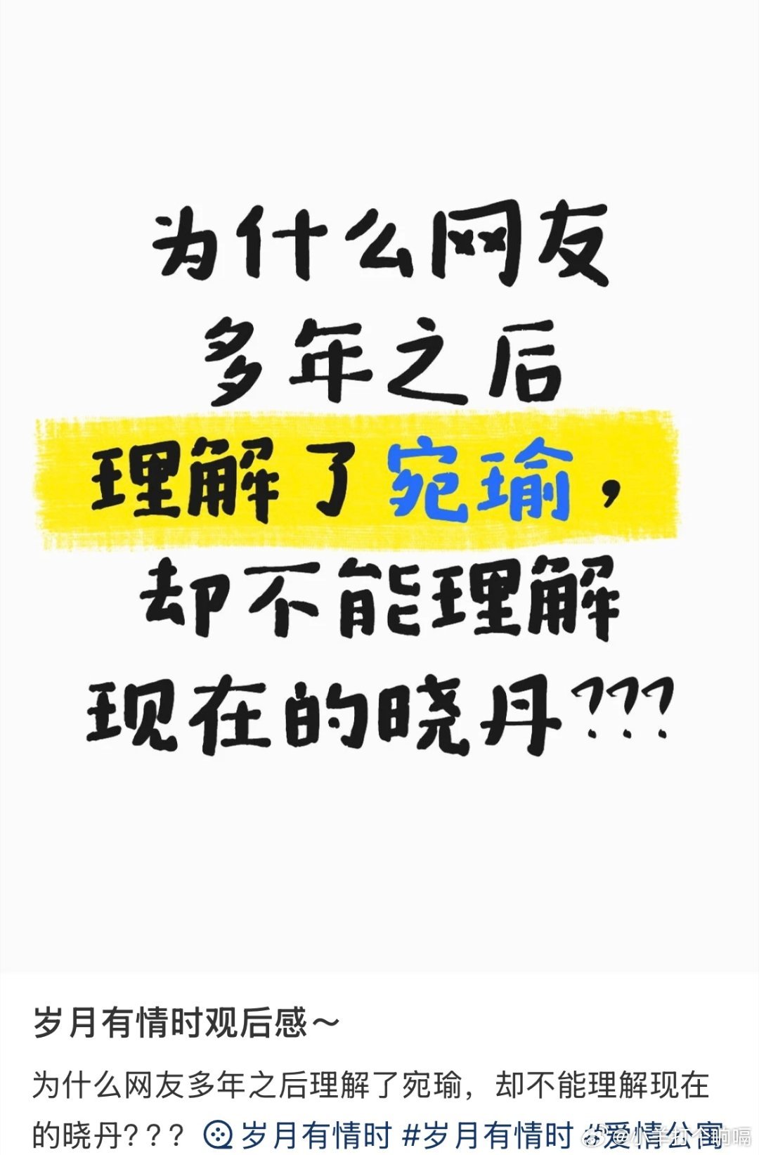 为何能理解宛瑜不能理解晓丹电视剧岁月有情时同样是“为前途放手”,宛瑜的离开是清醒的追寻自我,而晓丹更像是在顺风中后知后觉。追《岁月有情时》的你们,更能理解哪一种心情?