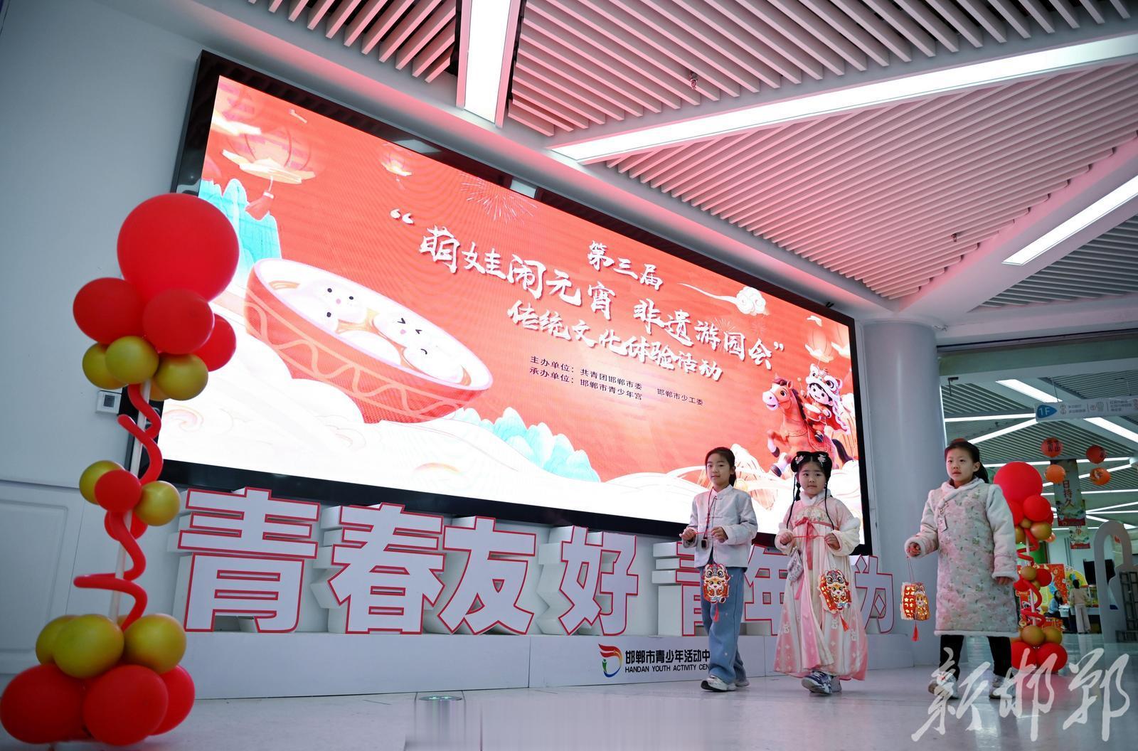 为弘扬优秀传统文化,进一步丰富青少年精神文化生活,2月28日,由共青团邯郸市委、市少工委主办,市青少年宫承办的第三届“萌娃闹元宵非遗游园会”传统文化实践体验活动在市青少年活动中心开展。160余名青少年齐聚一堂,通过滚元宵、猜灯谜、扎灯笼、投壶竞技、非遗拓印等丰富多彩的趣味体验项目,在欢声笑语中感受元宵佳节的传统民俗魅力。邯郸新闻传媒中心记者