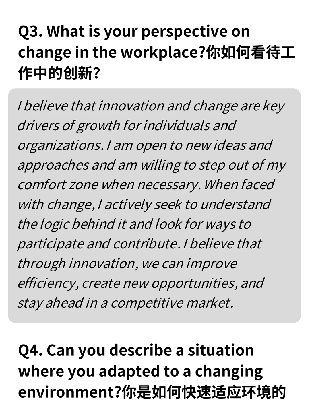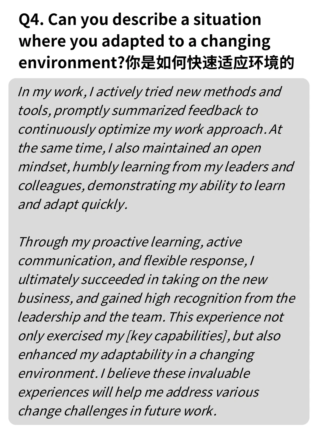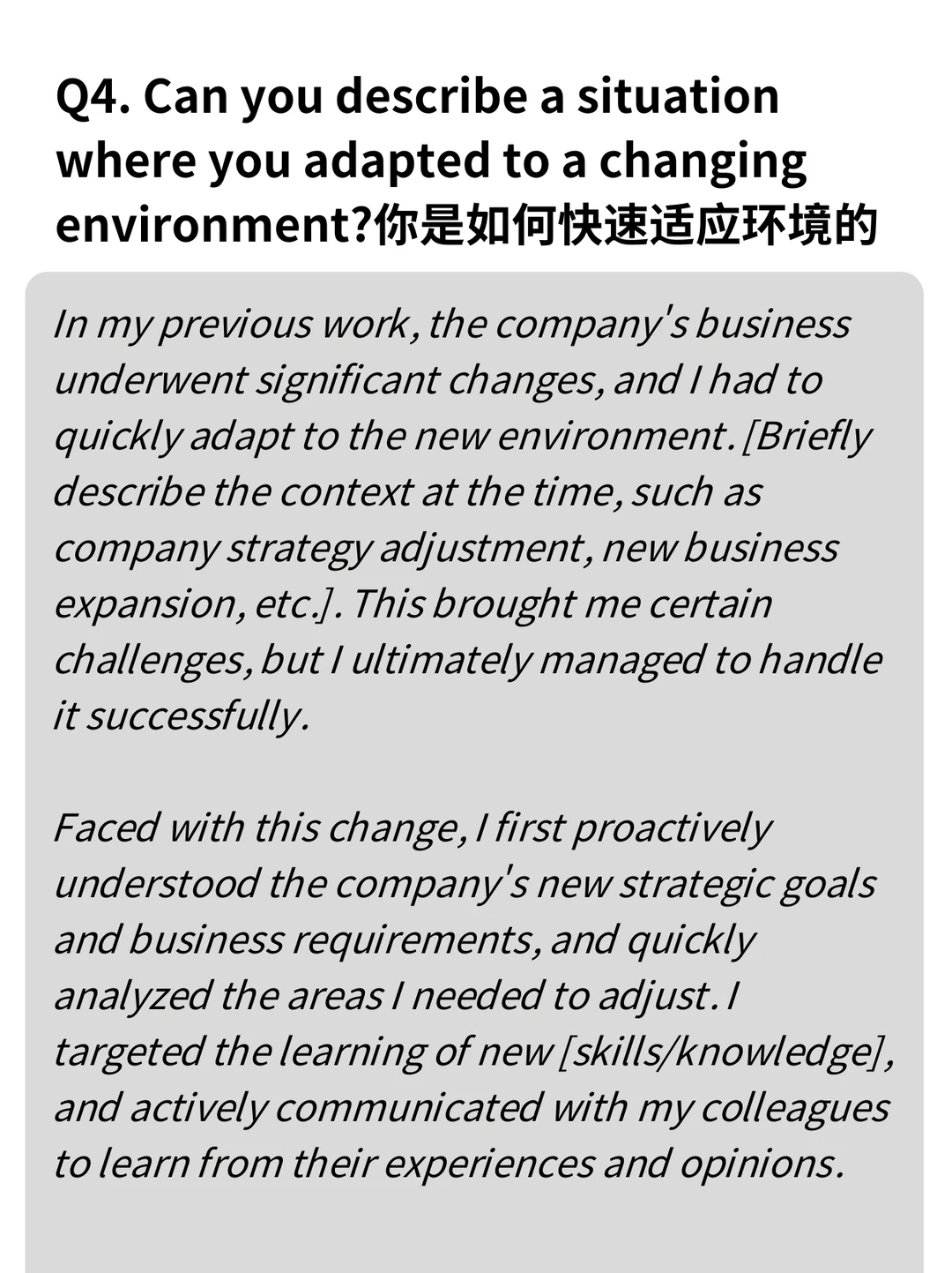 Q4. 描述一次你迅速适应变化环境的情况