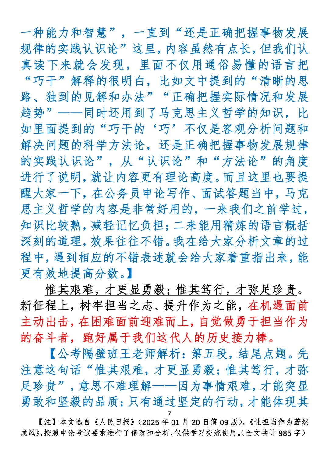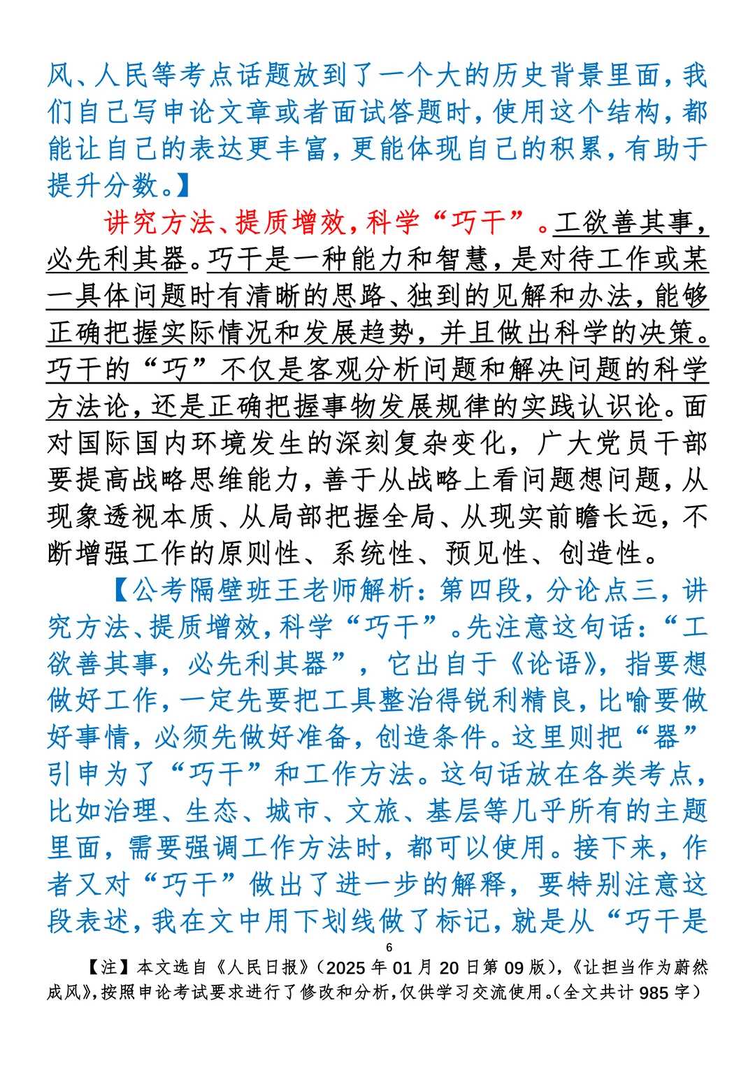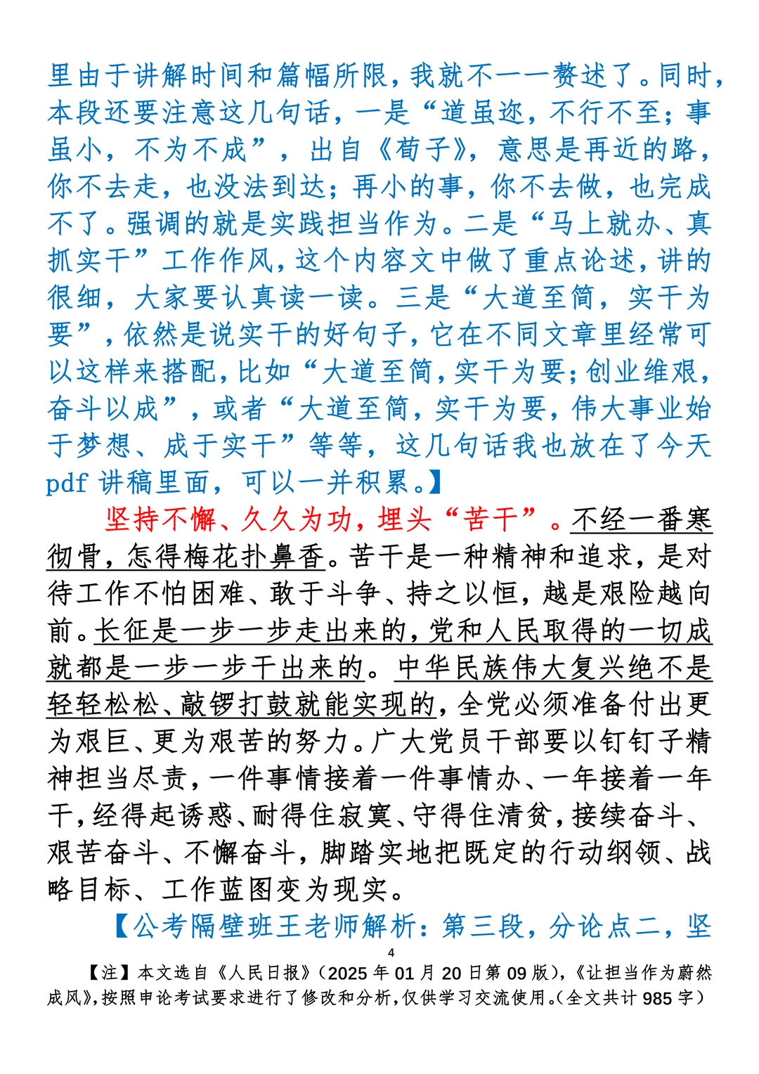 如何抄写:每日抄写文章发在“公考隔壁班王老师”账号,红色字是重点句和结构句,黑色字是正文,蓝色字是解析,大家抄写时不必抄蓝色字。建议先通读全文,做到心中有数再开始抄写,效果会更好。 关于文章:抄写文章来源于人民日报,但每篇文章我都根据申论考试要求进行了修改:一是重写或修改开头、结尾;二是统一段首句句式结构;三是调整段落字数,使文章结构更均衡;四是简化复杂长难句,使之更具可模仿性。每篇文章无论修改多少,都是基于申论考试要求,毫无对人民日报文章品评之意。(此处致敬人民日报)