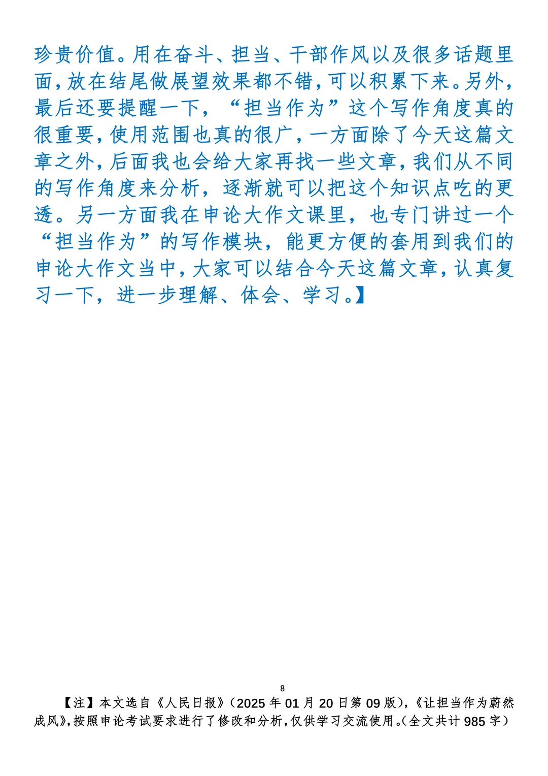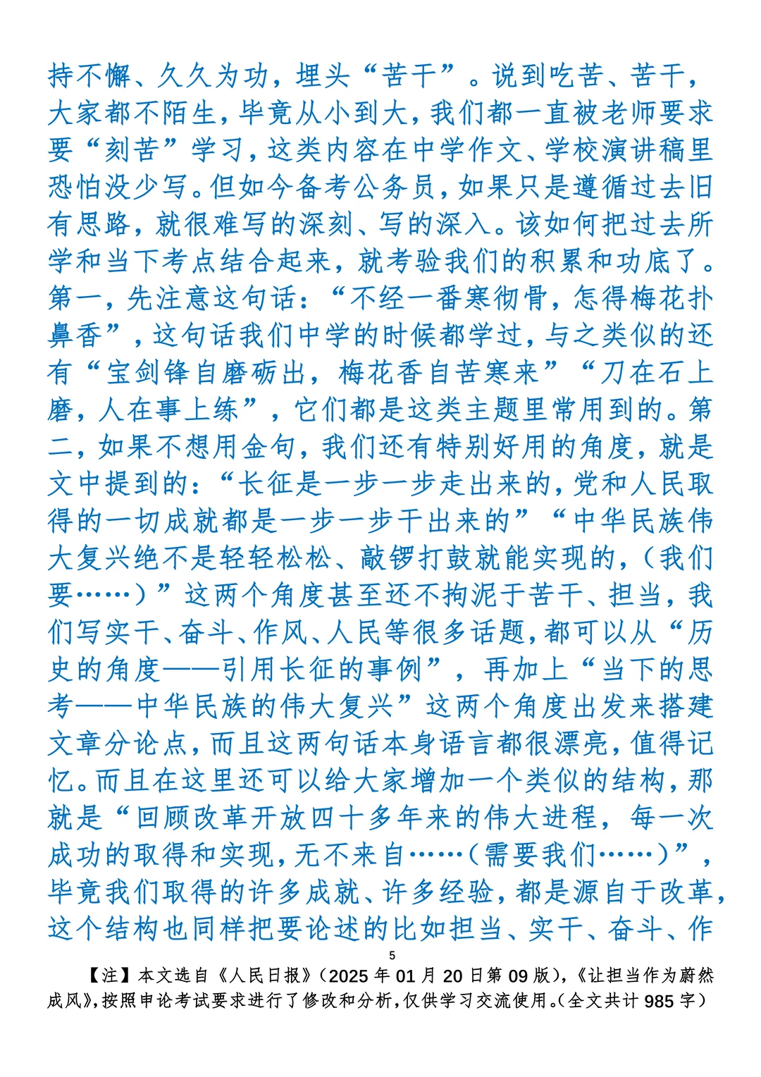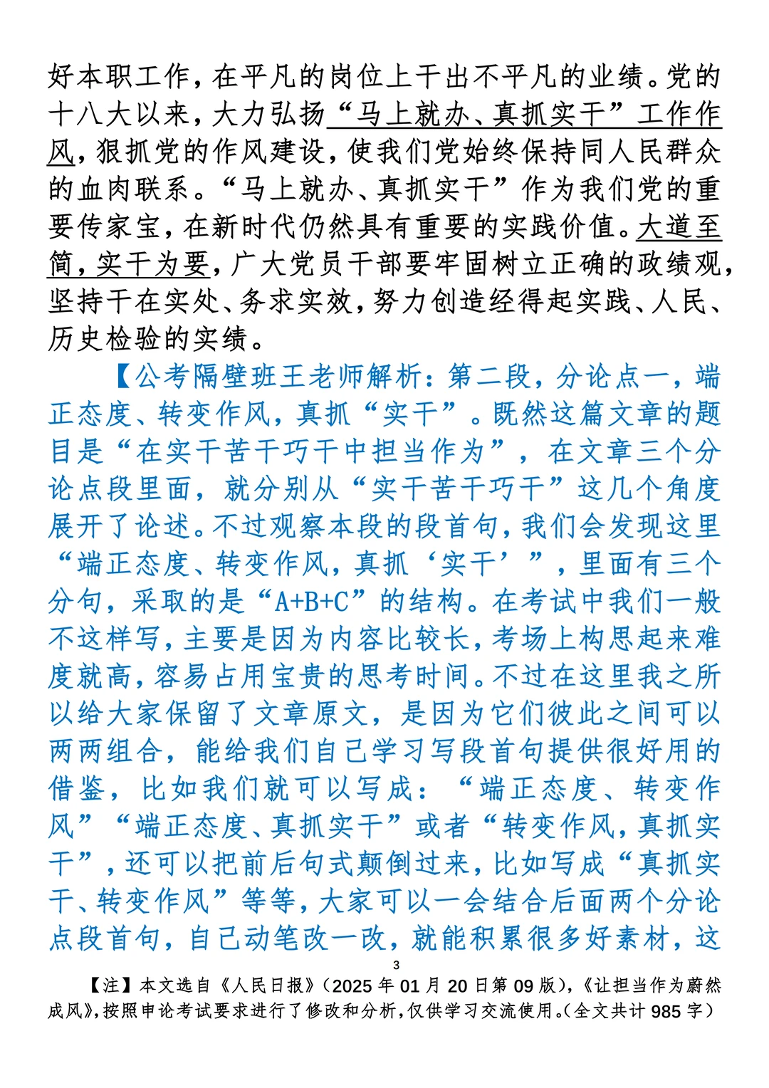 如何抄写:每日抄写文章发在“公考隔壁班王老师”账号,红色字是重点句和结构句,黑色字是正文,蓝色字是解析,大家抄写时不必抄蓝色字。建议先通读全文,做到心中有数再开始抄写,效果会更好。 关于文章:抄写文章来源于人民日报,但每篇文章我都根据申论考试要求进行了修改:一是重写或修改开头、结尾;二是统一段首句句式结构;三是调整段落字数,使文章结构更均衡;四是简化复杂长难句,使之更具可模仿性。每篇文章无论修改多少,都是基于申论考试要求,毫无对人民日报文章品评之意。(此处致敬人民日报)