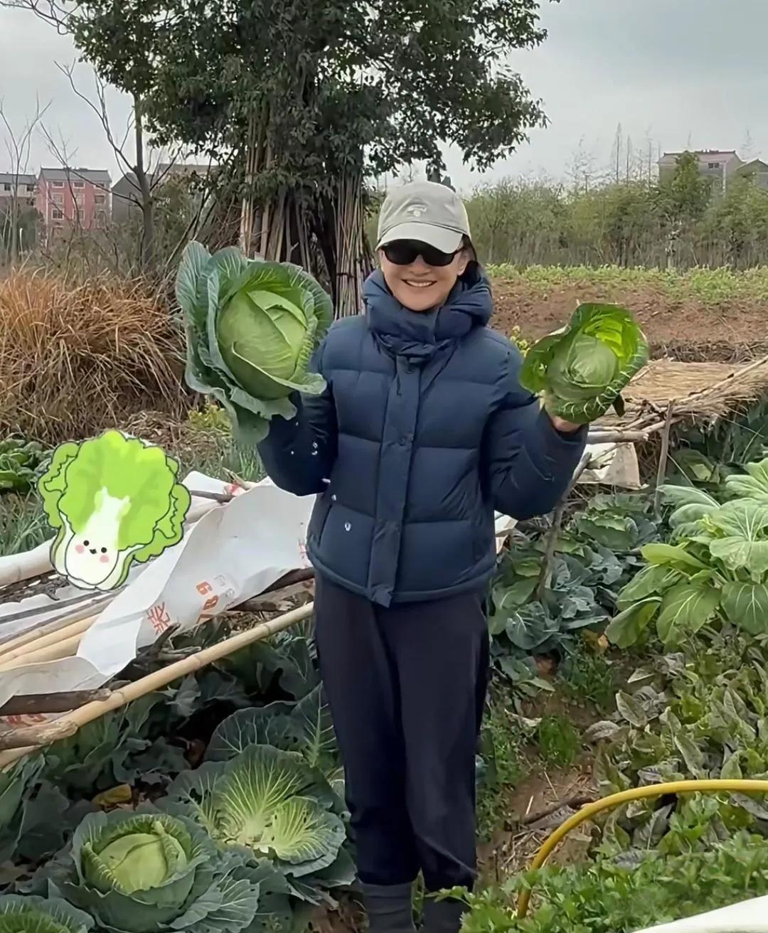 52岁周迅回浙江老家农村探亲,亲自到地里摘菜,她穿着一身名牌衣服,和周围的环境格