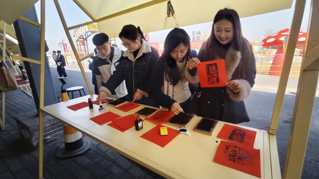 游客正在体验拓印木版年画