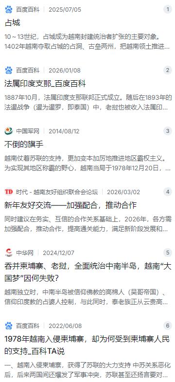 越南不恨美国,不恨日本,就连被殖民几十年的法国也不恨,唯独就是恨中国!其实,答案很简单,核心就是中国没让越南实现统一中南半岛的野心,而越南始终认为,那是它唯一的机会,毕竟翻看历史,中华帝国历朝历代,从来都不会让中南半岛实现统一。   麻烦看官老爷们右上角点击一下“关注”,既方便您进行讨论和分享,又能给您带来不一样的参与感,感谢您的支持!   说起越南这个国家,他们的心态确实挺复杂。你看历史,越南被法国殖民过,被日本占领过,跟美国打了那么多年仗,按理说对这些国家都应该恨得牙痒痒。但现实挺有意思,越南人对这些前仇家没那么大情绪,反而对中国有一种说不清道不明的“怨念”。这背后的原因,掰扯清楚了,其实就是一句话:中国堵住了越南在中南半岛“说了算”的路。   要理解越南的这个心结,得先把时间往回拨一千年。公元10世纪越南脱离中国独立出去之后,它的历代王朝干得最多的一件事就是向南扩张。那时候的中南半岛不光是越南人,还有占城人、高棉人。越南通过几百年“蚕食”,在1471年攻陷占城首都,到了17世纪又吞并了湄公河三角洲,一步步把占城、柬埔寨的势力挤走,才形成了今天这个狭长条的国家。在越南人看来,既然能一路吃下这么多地盘,那顺势把老挝、柬埔寨也纳入囊中,恢复古书里说的“天下”,似乎是顺理成章的事。   后来法国人来了,在1887年把越南、老挝、柬埔寨捏在一起,搞了个“法属印度支那联邦”。殖民者是坏,但这么一整合,反而给越南人递了个话:你看,咱们仨本来就该是一家。法国人为了省事,还重用越南人去管老挝和柬埔寨,让越南人觉得自己天生就比这两地的民族高一等。这种“大印支”的念想,不仅在殖民时期生根发芽,甚至一度写进了早期的越南共产党纲领里,想着有朝一日要建立“印度支那联邦”。   二战打完,法国人走了,美国人来了,越南又打了二十年仗,直到1975年才真正南北统一。仗打完了,本该歇口气搞建设,但当时的黎笋政府却没消停。为啥?因为在越南眼里,自己刚打败了头号强国美国,手里握着百万雄师,背后还有苏联撑腰,底气足得不行。1978年11月和苏联签了军事同盟性质的友好条约后,越南觉得后顾之忧没了,转头就在12月派了20万大军,直接推平了柬埔寨,推翻了红色高棉。这一招,就是要做实当年法国人留下的那个“联邦”框架,把老挝和柬埔寨变成自己的势力范围。   这下,中国没法忍了。你越南要是把柬埔寨吞了,或者完全控制住,那中国西南边境就直接面对一个超级膨胀的邻居,这可不是什么好事。况且那时候中苏已经交恶,越南彻底倒向苏联,等于是在中国家门口帮苏联搞包围圈。再加上越南那时候在国内排华,在边境搞摩擦,桩桩件件加在一起,直接把局势推向了临界点。1979年2月17日,对越自卫反击战打响。中国的意图很清楚:不是为了占你一寸土地,而是要把你打回谈判桌,让你知道在东南亚这一亩三分地上,不能由着你胡来。打到3月5日,拿下谅山,威逼河内之后,中国宣布撤军。   这一仗,对越南来说,心理冲击太大了。在他们看来,自己离“整合中南半岛”就差最后一步,眼瞅着要成就百年基业,却被北边的大国硬生生给拽了回来。这就像一个球员刚要起脚射门,球被人踢飞了,那种懊恼和挫败感,久久散不去。更让越南难受的是,中国撤军前顺手把沿途的工事、公路、工厂全给破坏了,这些东西当年不少还是中国援建的。这一下,越南往后的日子更艰难,还得长期在柬埔寨驻军维持局面,直到1989年实在扛不住才彻底撤出来。   当然,现在再说这些,都是过眼云烟了。这些年你去看中越边境,早就不是以前那个炮火连天的样子。就拿刚过去的事儿说,2026年春节刚过,越南谅山省的领导和中国广西凭祥市的代表团就坐到一起,喝茶聊天,商量怎么让口岸通关更快,怎么多卖点货。中国驻越南大使也见越南工贸部的负责人,两边聊的都是怎么把贸易额再往上提一提,怎么把铁路公路对接好。越南现在的年轻人和商人,更关心的是怎么把自家的水果、海鲜顺顺当当地卖到中国来,而不是老一辈心里的那些陈年旧账。   说到底,国与国之间,远了打仗,近了打结。越南恨也好,怨也罢,根子上还是那个没实现的地缘野心在作祟。但历史没有假如,中南半岛现在的格局就是大国平衡的结果,越南接受也好,不接受也罢,都得在这个框架里过日子。现在两国能坐下来谈合作,说明大家都想明白了:与其纠结过去那些没成的事儿,不如想想怎么让老百姓过上好日子。这就是现实,比任何野心都来得实在。