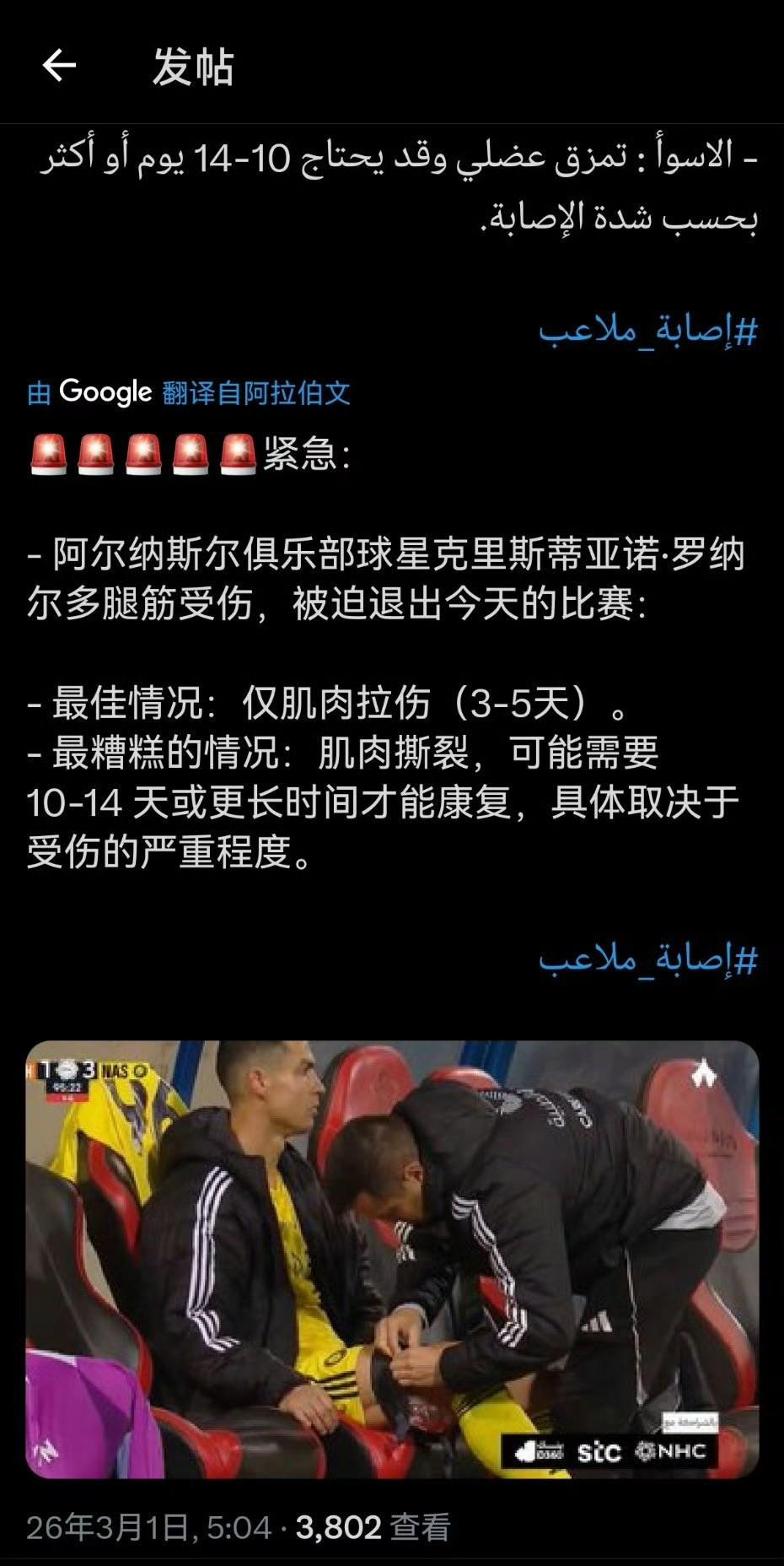 C罗职业生涯后期的伤病频率其实比早期低很多,这和他极致的自律分不开。这次刚在沙特出现肌肉不适,希望只是小问题,毕竟世界杯快到了。 其职业生涯中遭遇了28次伤病,导致他缺席了大约434天。加盟利雅得胜利之前曾遭遇24次伤病。 皇马13次、曼联5次、尤文5次、葡萄牙国家队7次。其中一次因为膝盖手术缺席71天。