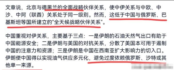 德媒这一次倒是难得的说了“实话”! 德媒表示,中伊关系并不是盟友关系,在中方看来,打击伊朗更像是美国惹出的麻烦! 3月2日,德国之声刊文表示,中国在伊朗有相当大的利益,但这些利益并非生死攸关,北京与德黑兰的全面战略伙伴关系,这让中伊关系与中欧、中沙、中阿(联酋)关系只是处于同一级别。 那中国到底是怎么看待和伊朗的关系,又是怎么做的呢?咱们得理解中国在中东这盘大棋上的根本思路,核心诉求就俩字:稳定。咱们需要的是和平合作的环境,让大家都能安心做生意、搞建设,可不是战火纷飞、今天你炸我、明天我打你的烂摊子。 中国在伊朗有能源利益,伊朗长期是中国重要的原油供应国之一。但咱们的石油进口来源早就多元化了,俄罗斯、沙特、非洲、拉美,渠道多着呢,鸡蛋从来不放一个篮子里。中国在伊朗有投资和工程项目,但做生意讲究的是互利共赢和可控风险,是签合同、搞建设,更不是替别人去扛枪打仗、冲锋陷阵。 所以看看咱们国家的具体行动,非常清晰,也很有章法。 第一步,也是最重要的一步:保人。外交部发言人毛宁在3月2号的记者会上证实,已经协助超过3000名中国公民从伊朗撤离出来了。中国驻伊朗大使馆连夜公布了5条陆路撤离通道,分别通往阿塞拜疆、土库曼斯坦、亚美尼亚、土耳其和伊拉克,并且周边国家的使领馆已经派出工作组到口岸接应。这行动干脆利落,传递的信号再明白不过:保护自家人的安全是头等大事,伊朗的仗是伊朗和美国、以色列之间的事儿,我们不掺和,先把咱们的同胞平安带回家再说。 第二步,划清界限,避免引火烧身。这两天外媒开始炒作,说中国和伊朗接近达成协议,要卖那种能打航母的CM-302超音速反舰导弹。这消息一出来,好像中国马上就要给伊朗递枪一样。结果呢?毛宁在同一个记者会上直接怼回去了,说这报道“不属实”,是“恶意关联炒作”。意思再清楚不过:正常的经贸合作可以做,但敏感武器这种最容易引火上身的交易,中国谨慎着呢,别想往我们头上扣“军援伊朗”的帽子。真要是那种不计后果的军事同盟,会这么急着、这么明确地公开撇清关系吗? 第三步,在国际上讲道理、立规矩。外交部长王毅应约同俄罗斯外长拉夫罗夫通了电话,两人协调了立场。王毅提出了中方的三点核心立场:第一,立即停止军事行动,防止战火外溢;第二,尽快重回对话谈判;第三,共同反对这种未经联合国安理会授权、就对主权国家大打出手的单边行径。 这些话听起来四平八稳,但句句都站在了维护《联合国宪章》和国际法基本准则的理上。既明确反对了美国的粗暴行为,谴责了杀害一国领导人的行径,同时又没有把自己和伊朗捆绑在一起,去直面美国的锋芒,而是把问题拉回到“大家都要讲规则”的轨道上。 这种“劝和促谈”、“平衡务实”的做法,可能没有某些人期待的“快意恩仇”那么过瘾,但却是真正对本国人民负责、对地区和平负责的长远之道。中国在中东的朋友很多,有伊朗,也有沙特、阿联酋;中国反对任何国家在中东搞霸权、生战乱,但也不会自己去当头儿、拉一派打一派。 中国的角色,更像一个希望街坊邻居都和睦相处、好好做生意的“稳定器”,而不是一个撸起袖子准备干架的“参与者”。通过德媒这次的说辞,其实也能看出来,西方世界在看待中国时,常常摆脱不了那种“冷战思维”,要么把中国想象成处处和西方作对的“挑战者”,要么就把中国与其他国家的关系简单解读为“对抗西方的联盟”,很少愿意抛开偏见,去正视中国这套基于自身发展经验、强调合作共赢的外交逻辑本身。 不管怎么说,美国在中东又点起了一把大火,但中国有自己的节奏和章法。不会因为你是“全面战略伙伴”就被你拖入险地,也不会因为反对“霸凌”就直接下场对抗。该撤侨时果断撤侨,该辟谣时明确辟谣,该讲理时在国际上讲清道理。中国正在用自己的一套行为方式告诉世界:大国相处,除了对抗,还有另一种更聪明、也更负责任的选择。
