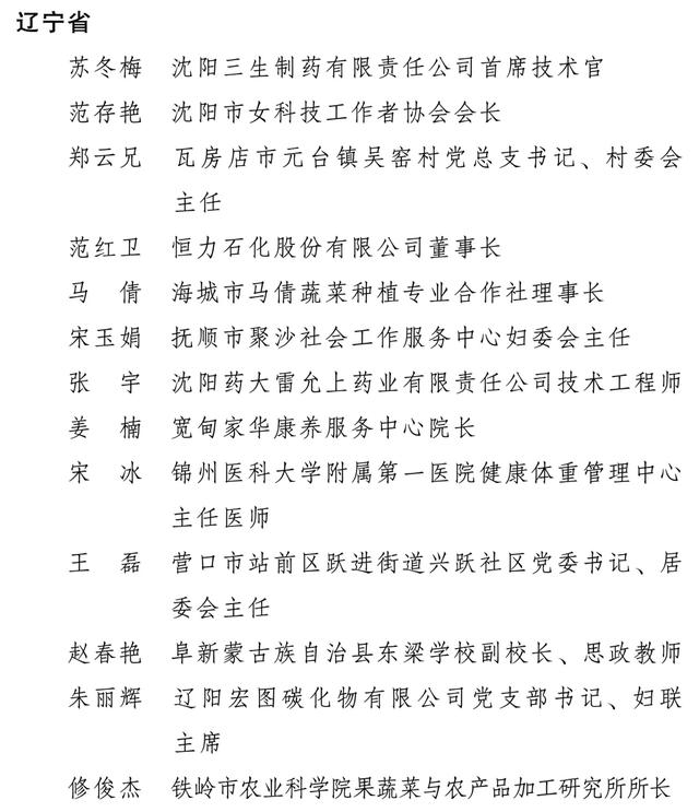 2025年度辽宁省表彰名单如下