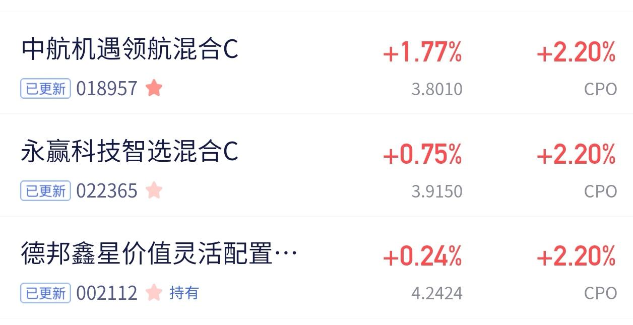 离谱!CPO三只标的,德邦今天直接掉队了?🤯 CPO板块净值更新,我观察的三只标的今天的表现,差距真的有点离谱: - 中航机遇领航:今日涨幅 +1.77%,一马当先,直接把另外两个甩在身后。 - 永赢科技智选:今日涨幅 +0.75%,中规中矩,稳步跟涨,还在自己的节奏里。 - 德邦鑫星价值:今日涨幅 +0.24%,今天属实是落后了,和前两名的差距肉眼可见。 明明都是CPO赛道,今天的分化却这么明显。中航领航强势领跑,永赢智选稳步跟进,唯独德邦鑫星价值拖了后腿,这表现确实让人有点意外。 不过CPO这条主线的热度还在,短期的波动和分化也很正常,继续观察后续表现吧,看看德邦能不能后来居上~ 股票基金etf etf板块 etf成分股 etf持仓 etf实盘日记 etf净流入 中国ETF市场 etf资金 买ETF有什么好处和坏处创业板cpo cta股票 先锋领航资本 CXO概念股 质谱ai概念股 航空航天etf 中航机遇领航C
