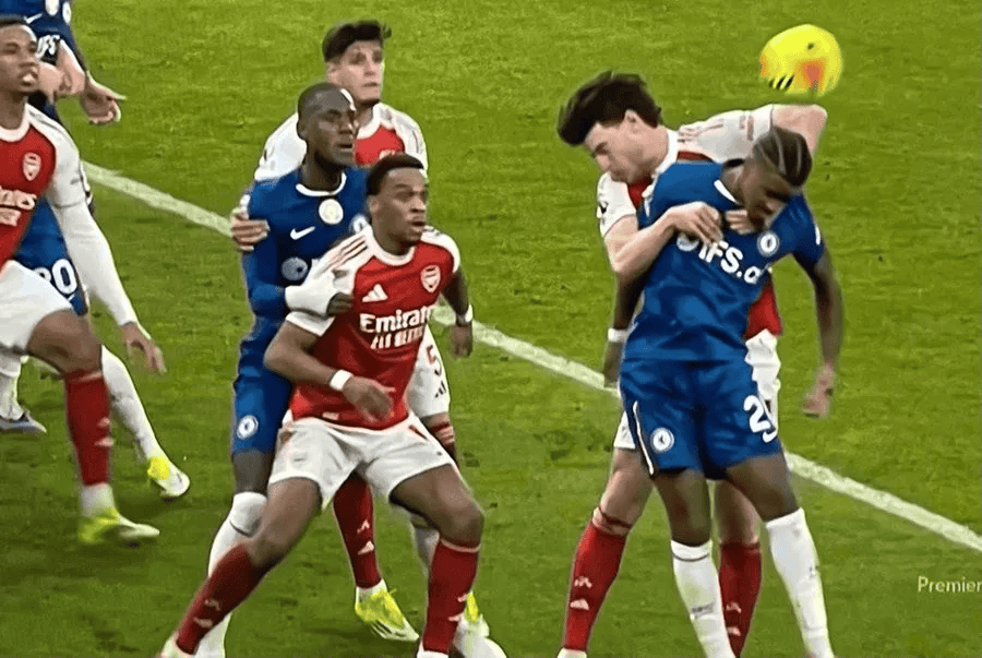 虎扑03月02日讯本轮英超,阿森纳2-1战胜切尔西。上半场比赛,阿森纳中场赖斯在角球防守中疑似手球但未判罚。