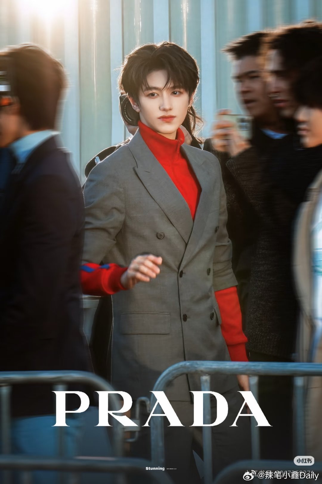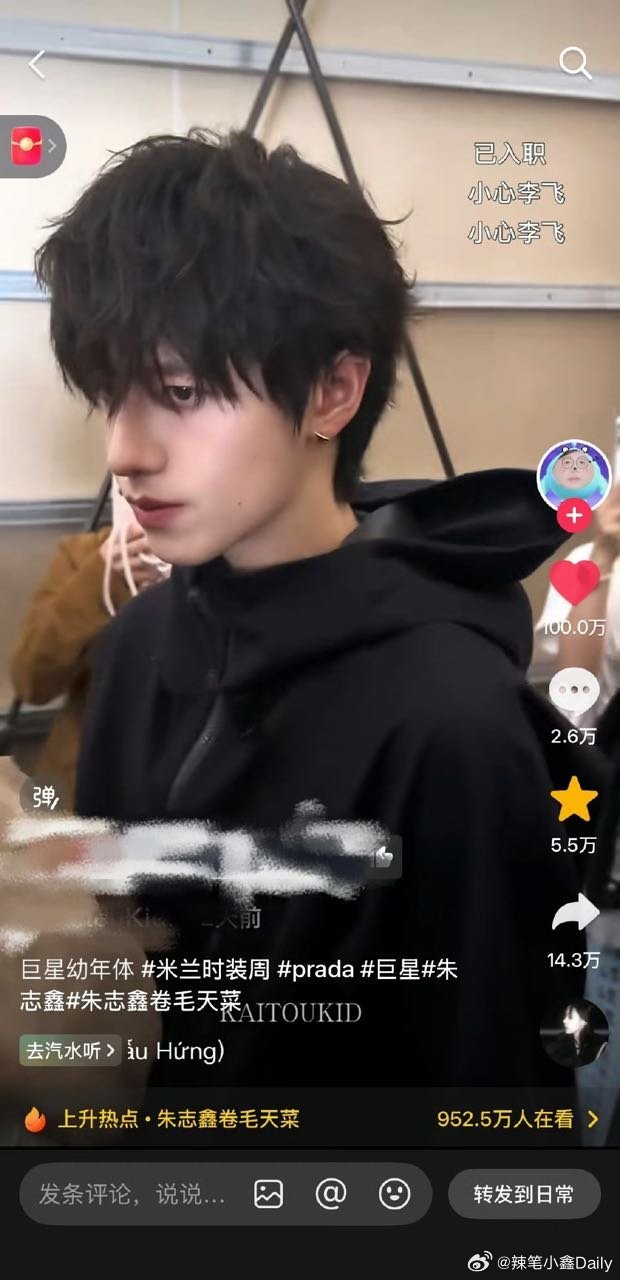 朱志鑫Prada卷毛路透dy破百万!是米兰时装周第一且唯一破百万视频🔥