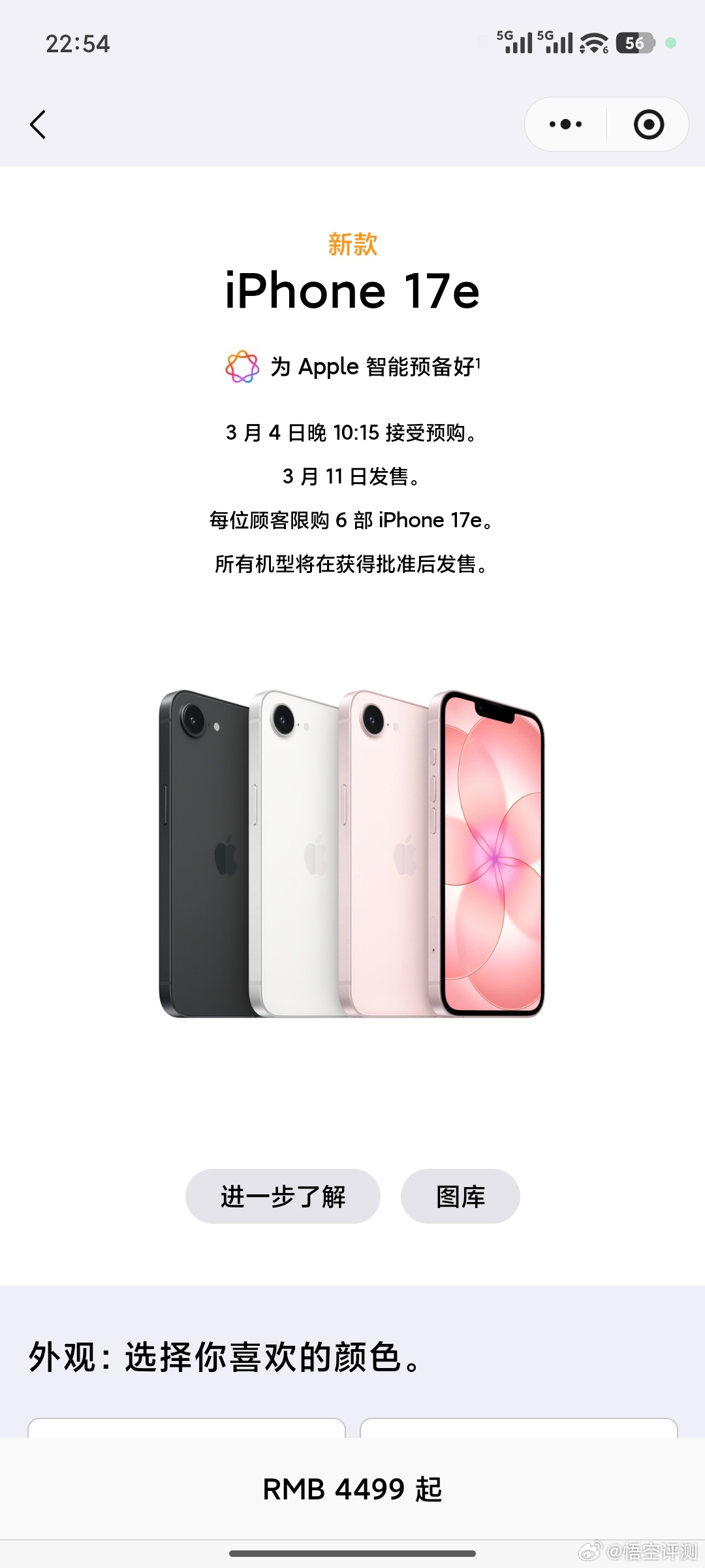 一个个都说不买一个个都说60hziPhone17e还是发布了,4499起。