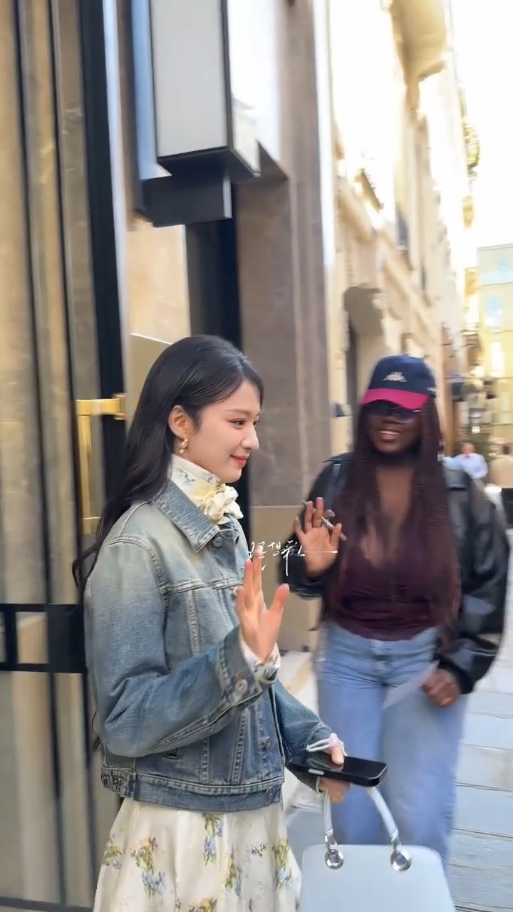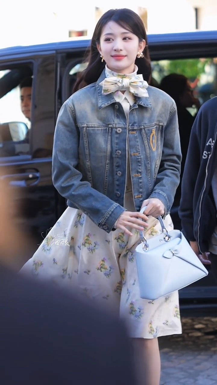 楚然女神闪耀巴黎!!王楚然牛仔衣连衣裙造型