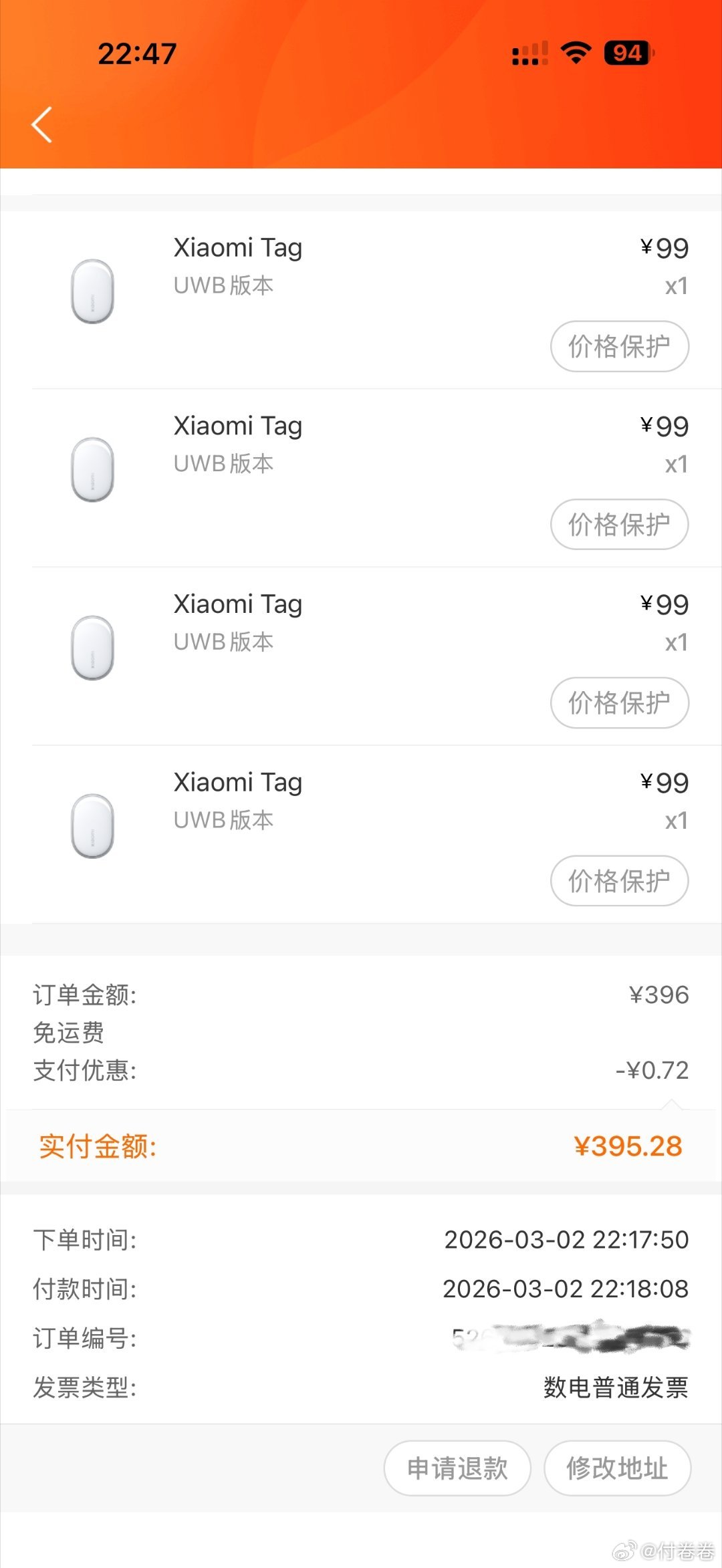 盼了这么久小米终于上架了!我的AirTag单个200多元……小米UWB版也才129块钱(四件套396,相当于单个99),蓝牙版69元,这价格真的香哭哭了小米tag付卷卷