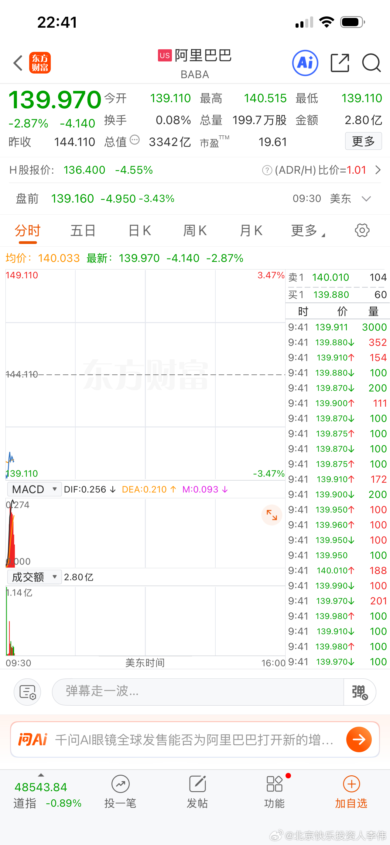 中概股被明显做空,金龙指数连续大跌,阿里巴巴市盈率19.61倍,京东8.35倍,