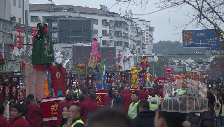 省级非物质文化遗产项目婺源抬阁代表性传承人张文和表示,这是为了一年风调雨顺的祈福方式,小舞台上,两个演员都是孩子,悬空站在上面,扮演古装戏剧,造型有的武将、小姐、皇帝。观众远看就像一对金童玉女在空中飘踩。