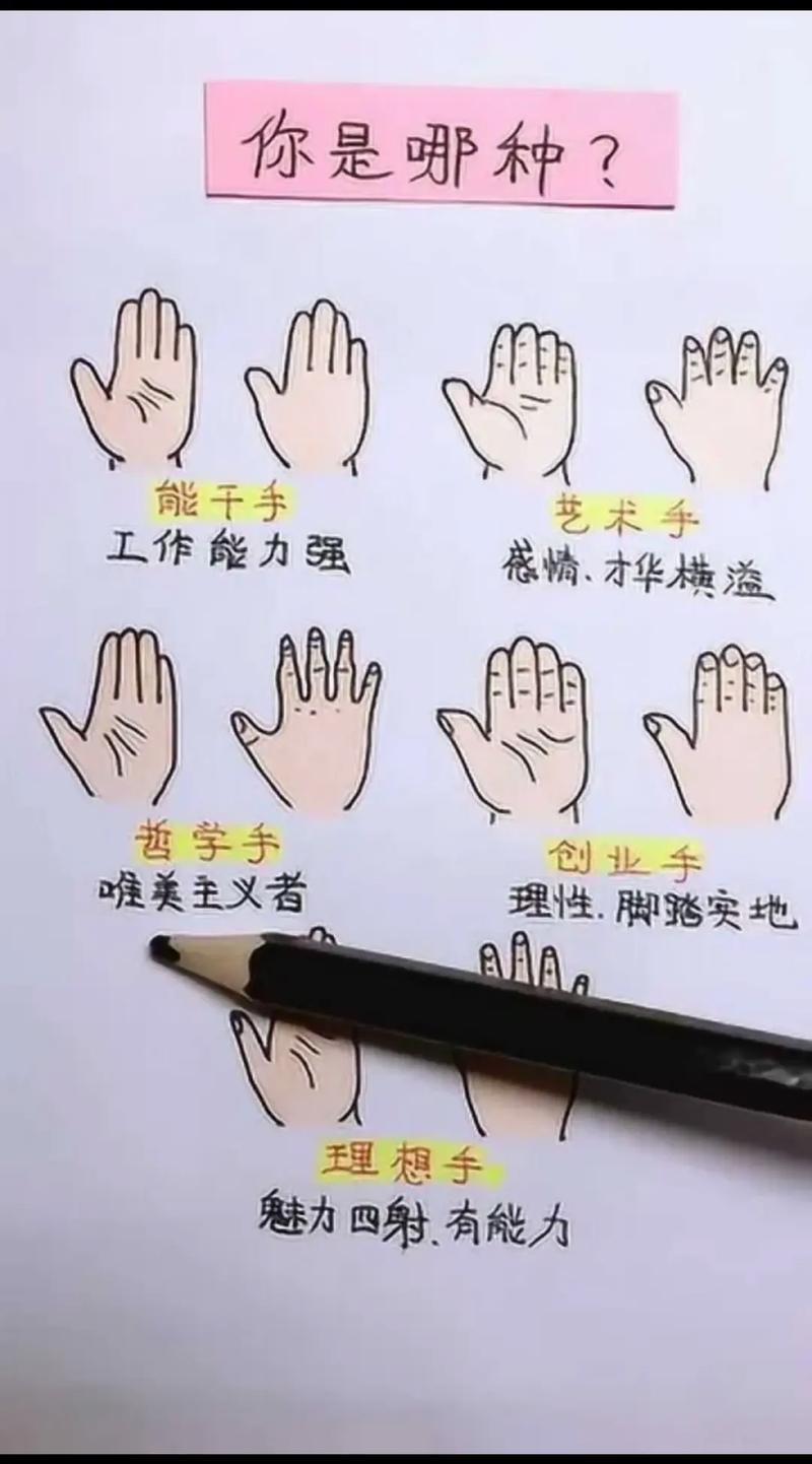 手纹测手型 , 大有学问,测测你是啥手型?——期待大富大贵 看手纹测手型,手型中隐藏着大学问,你看这双手,透着一股从容大气的气场,掌心开阔,纹路清晰,天生就是一副能担大事、聚福聚财的好品相。 富贵掌——从轮廓看,这是标准的「元宝手」。掌心饱满如平底,手指圆润有肉,这在相学里是典型的“聚财库”格局。主其人性格稳重,能容天下财,往往是靠实力扎根,晚年福气坐镇的类型。 纹路解读: 事业线——笔直且清晰,如旗杆立住掌中央。预示着马年你的事业运如骏马奔腾,有一飞冲天的势头。这条路不是走捷径的,而是步步为营,越走越宽,越到后期越显贵人运。 智慧线——深长且略向下弯。代表你思维缜密,既有创意又懂落地,情绪稳定,是能给身边人带来安全感的“定海神针”。 感情线——纹路纯净,末端有分叉。说明你重情重义,家庭氛围和谐,是那种“把爱传出去”的人,人缘极佳,福报也多从人际关系中来。 祝福大家——手开万丈富贵路,心纳千祥如意春。这双手藏着的不是侥幸的财,而是凭本事吃饭,靠德行聚财的硬福气。马年愿你:手气亨通,所愿皆得,大富大贵挡都挡不住!