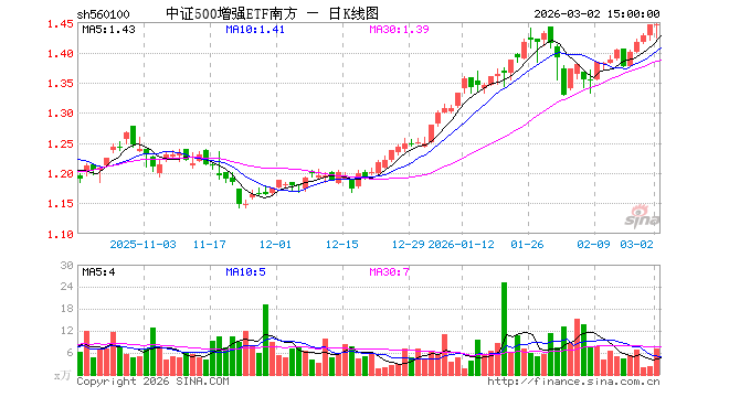 3月2日,中证500增强ETF南方(560100)涨0.00%,成交额1012.74万元。当日份额减少150.00万份,最新份额为6558.03万份,近20个交易日份额增加1200.00万份。最新资产净值计算值为9478.98万元。
