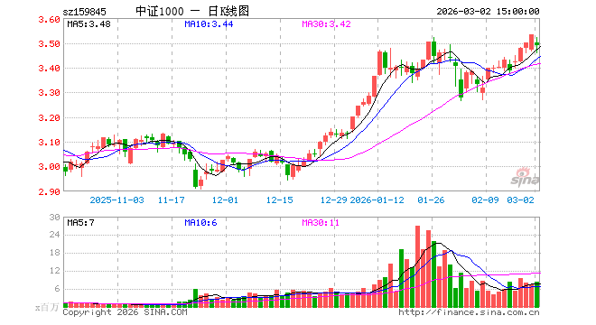 3月2日,中证1000ETF(159845)跌1.19%,成交额29.07亿元。当日份额减少3.84亿份,最新份额为28.76亿份,近20个交易日份额减少57.88亿份。最新资产净值计算值为100.50亿元。