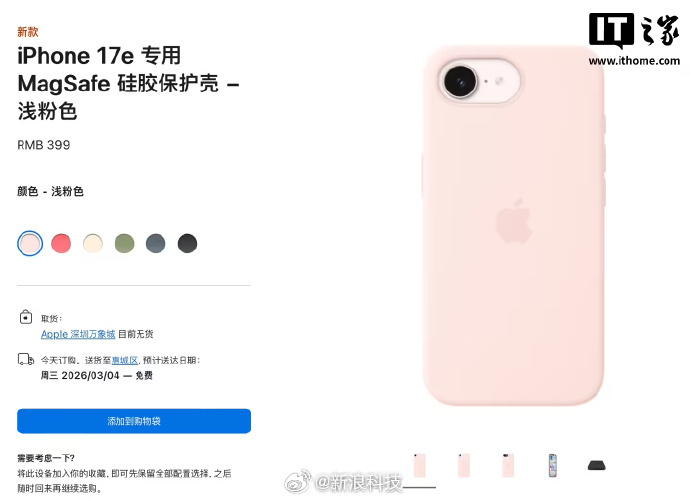浅粉色iPhone17e价格还行,看了一眼浅粉色配件价格,浅粉色硅胶手机壳399、浅粉色斜挎挂绳499,这个价格的配件你会买么?