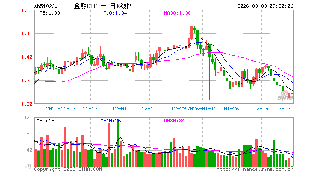 3月3日,金融ETF(510230)开盘涨0.08%,报1.322元。金融ETF(510230)重仓股方面,中国平安开盘涨0.16%,招商银行跌0.03%,兴业银行涨0.05%,中信证券跌0.04%,工商银行跌0.14%,国泰海通跌0.05%,农业银行跌0.31%,交通银行涨0.15%,浦发银行跌0.21%,江苏银行跌0.29%。