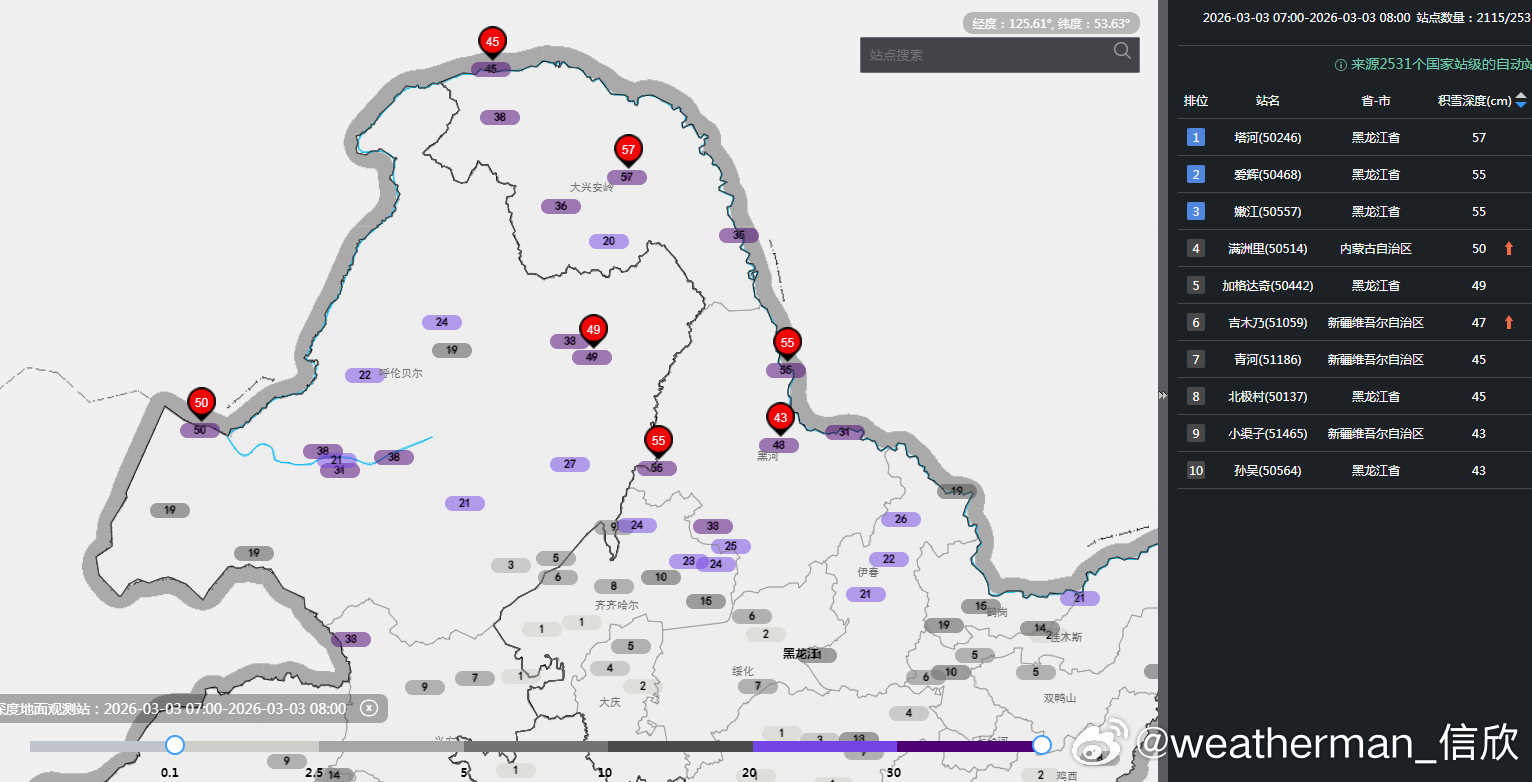 昨天到今晨,从山东西北部到内蒙古中东部出现了较大范围的降雪,而且内蒙古中部地区出现了打雷下雪的情况。今晨内蒙古满洲里积雪50厘米,黑龙江加格达奇(行政归黑龙江、地理位置在内蒙古的一块飞地)积雪49厘米,均打破当地观测史纪录。从今晨云图看,内蒙古东部一带有一个气旋,引导冷暖气流交汇,因此今天降雪还会继续。