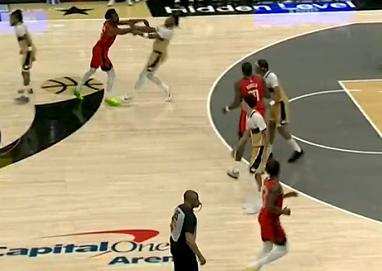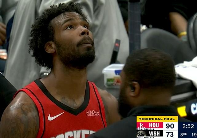 火箭伊森被驱逐始末,特雷杨更搞笑。 北京时间3月3日,火箭与奇才的比赛来到第三节最后3分钟,伊森被驱逐,原因如下: 图一:火箭半转换进攻,伊森一把推倒沃特金斯,托尼裁判由于没有看到事发一幕,没有吹罚伊森进攻犯规、甚至是技术犯规。 图二:霍乐迪抛投后,火箭防守时,伊森又一把推开沃特金斯,继而引发双方小冲突,裁判回看录像后,补吹伊森两个技术犯规。 图三:于是,伊森累计两T被驱逐,更搞笑的一幕,特雷杨虽然未出战,但是,他踏进赛场,被裁判直接驱逐,哈哈。