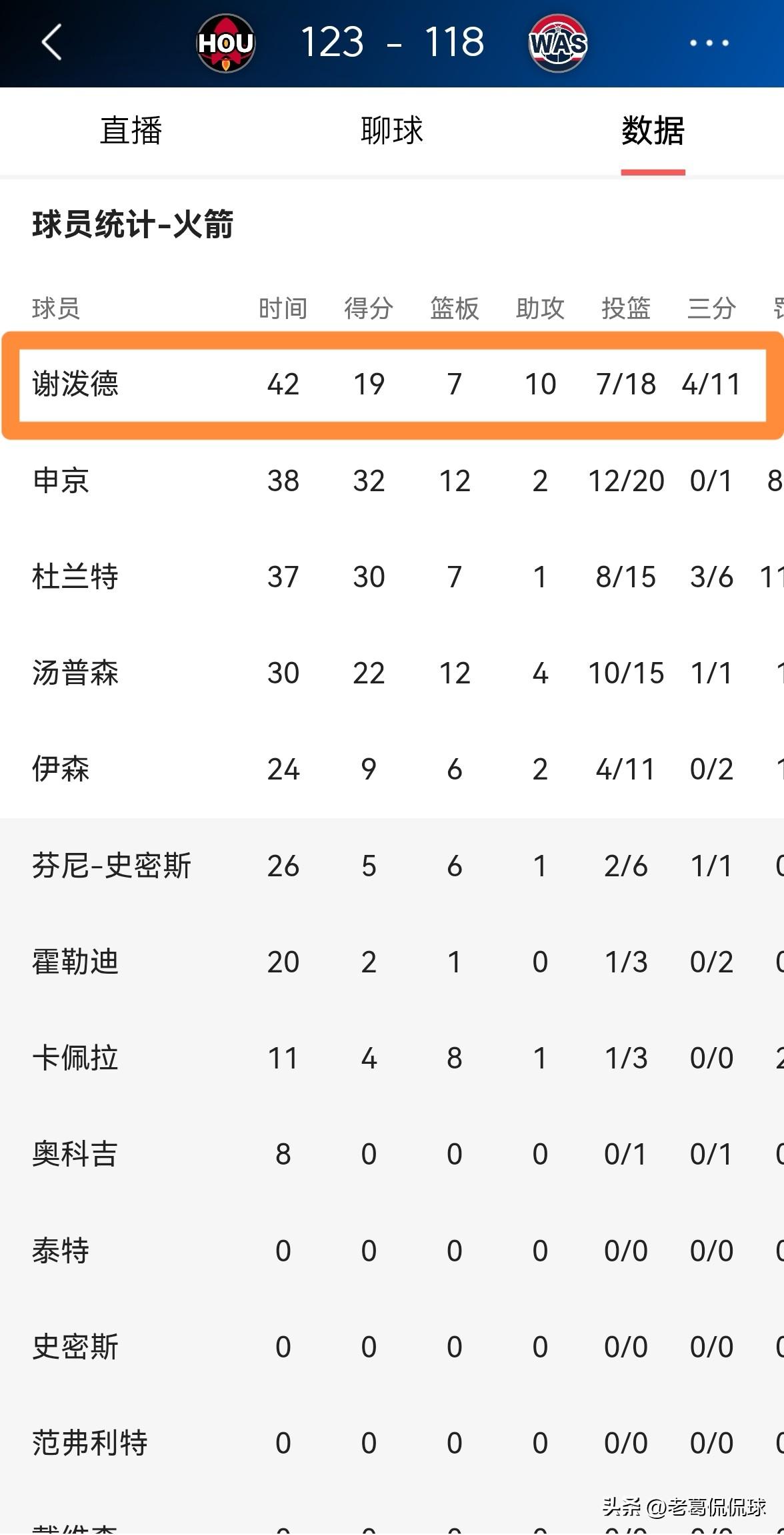 火箭当家控卫谢波德的数据真是无比的华丽!在今天火箭客场以123:118力克奇才的比赛中,谢波德打出了极其华丽的表现,其中他的助攻数和抢断数都创造了职业生涯新的记录。 全场比赛下来,谢波德首发出战42分钟,投篮18中7,其中三分球11中4、罚球2中1得到19分7篮板10助攻6抢断2盖帽,他的场上正负值为+10。 毫不夸张的说,以谢波德在本场比赛中的精彩表现来看,我觉得谢波德已经跻身到了当今联盟一流控卫的行列。