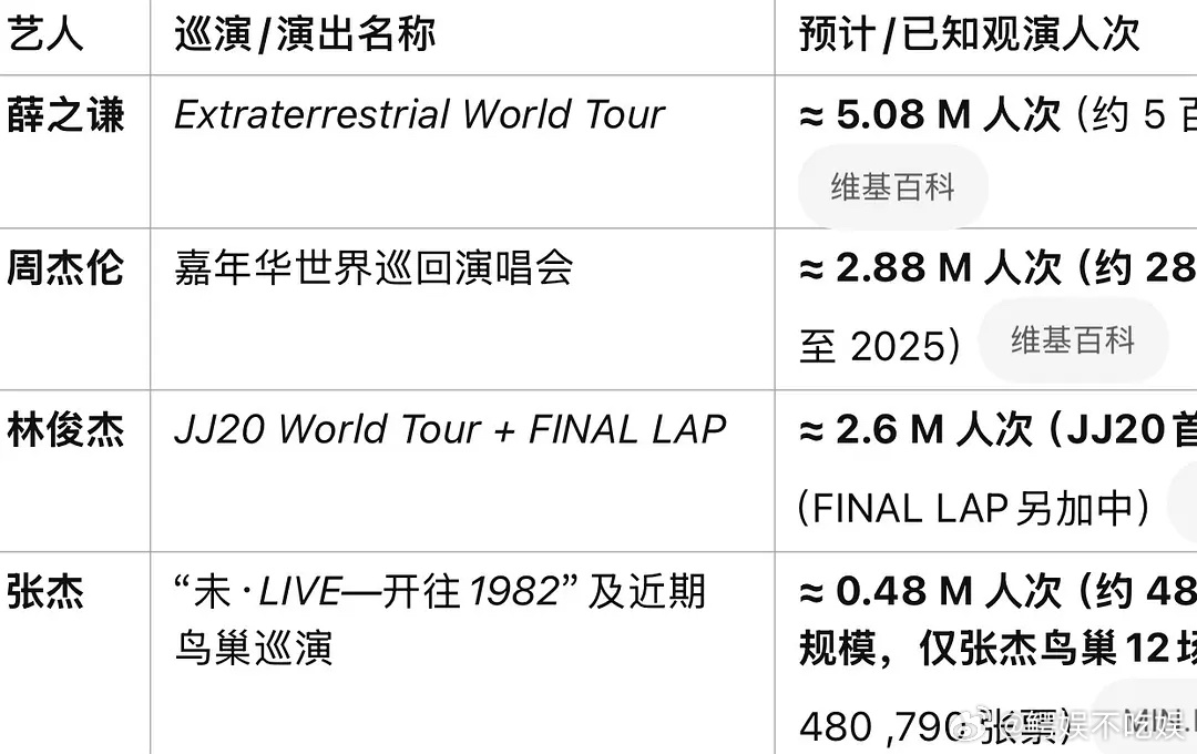 对比巡演数据薛之谦>周杰伦>林俊杰> >张杰,薛之谦还是有实力和热度的