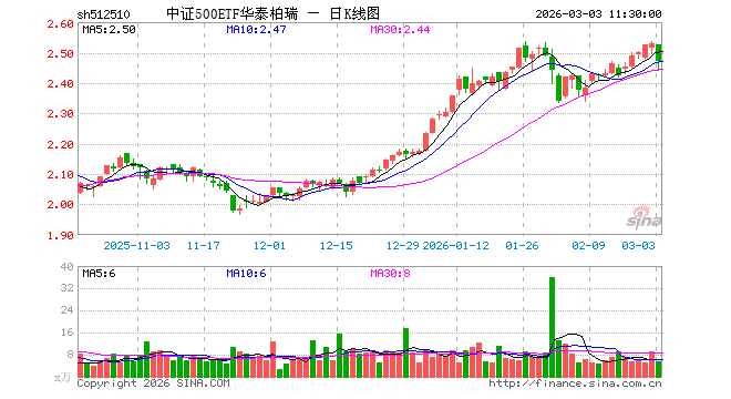 3月3日,截止午间收盘,中证500ETF华泰柏瑞(512510)跌2.29%,报2.470元,成交额1335.56万元。中证500ETF华泰柏瑞(512510)重仓股方面,英维克截止午盘跌5.42%,信维通信跌9.44%,巨人网络跌1.73%,中国卫星跌6.01%,航天电子跌6.02%,中矿资源跌5.48%,先导智能跌3.06%,卧龙电驱跌2.85%,赤峰黄金涨2.25%,兴业银锡跌6.14%。