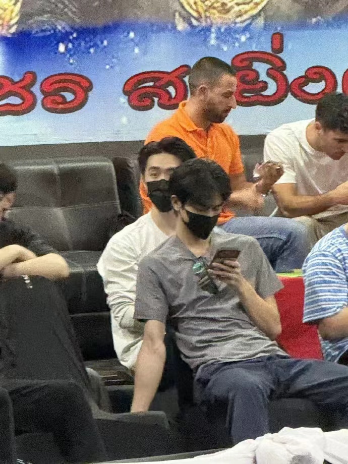 宋威龙在泰国看拳击赛,高糊都挡不住的浓颜大帅哥,这眉眼冲击力太强了