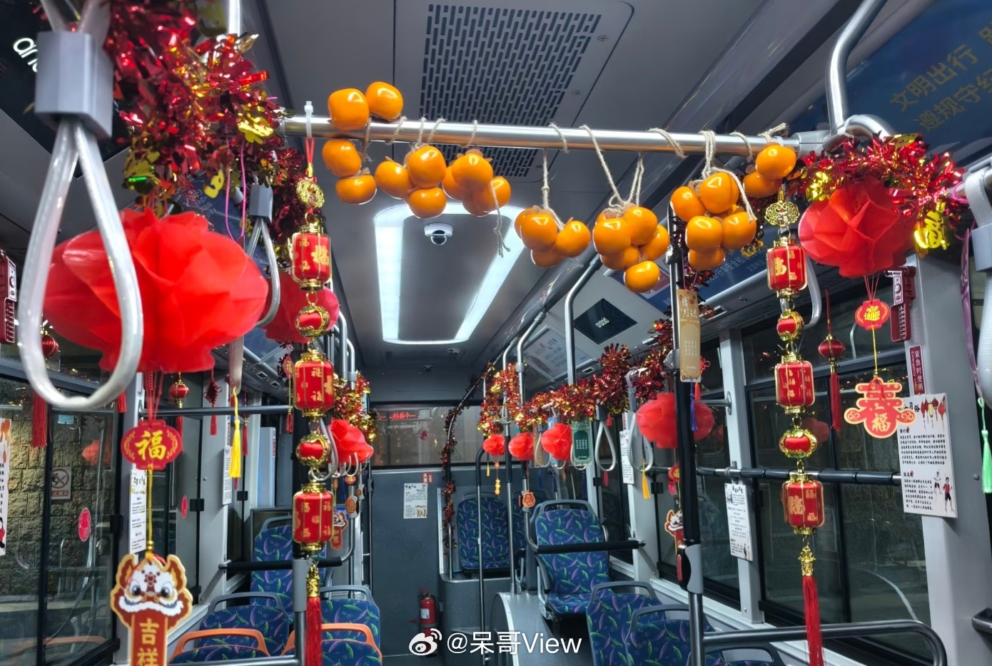 解锁青岛元宵新玩法!李沧公交直接化身移动灯会,红灯笼、中国结、灯谜卡挂满车厢,还有小礼物可以拿。李沧元宵节主题公交车