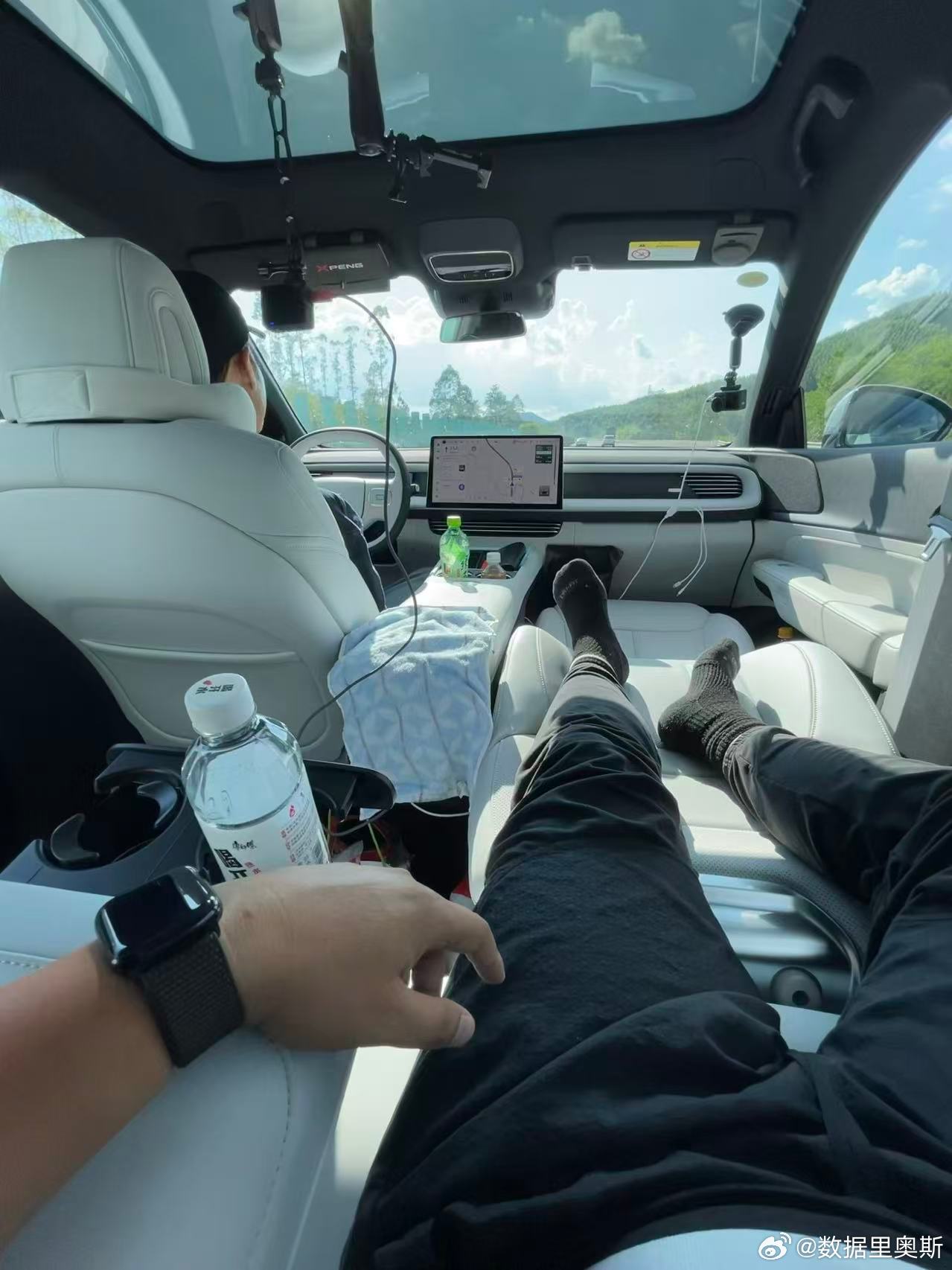 最舒适的休息场所虽说很多人提到电车休息就是大床模式,可是老实讲,我几乎没怎么用过,嫌麻烦。拆掉副驾头枕,后排座椅调整到最大角度,一个接近半躺的加长女王座是我午休最常用的模式。配合上G6的音响,放一段我最喜欢的ASMR助眠片段,中午半个小时到一个小时的休息质量极高。