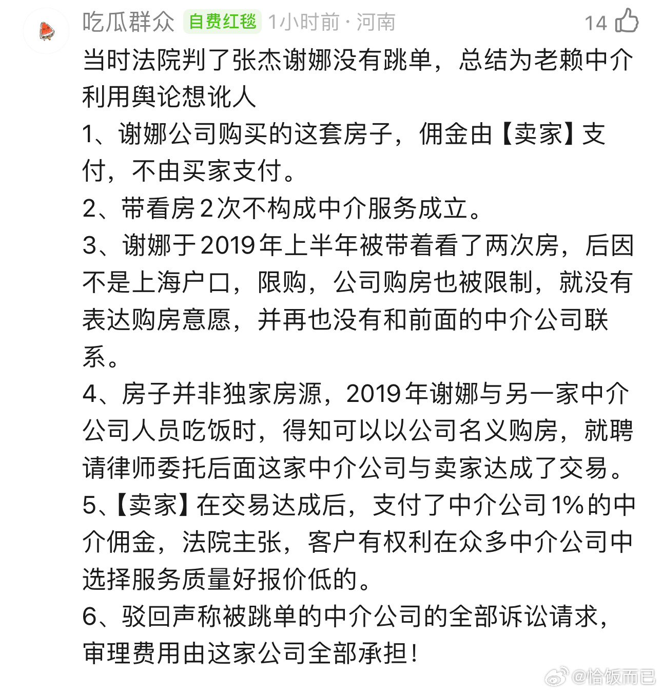 谢娜张杰中介澄清,当时是两个中介 选了性价比高的不存在跳单 【已胜诉】