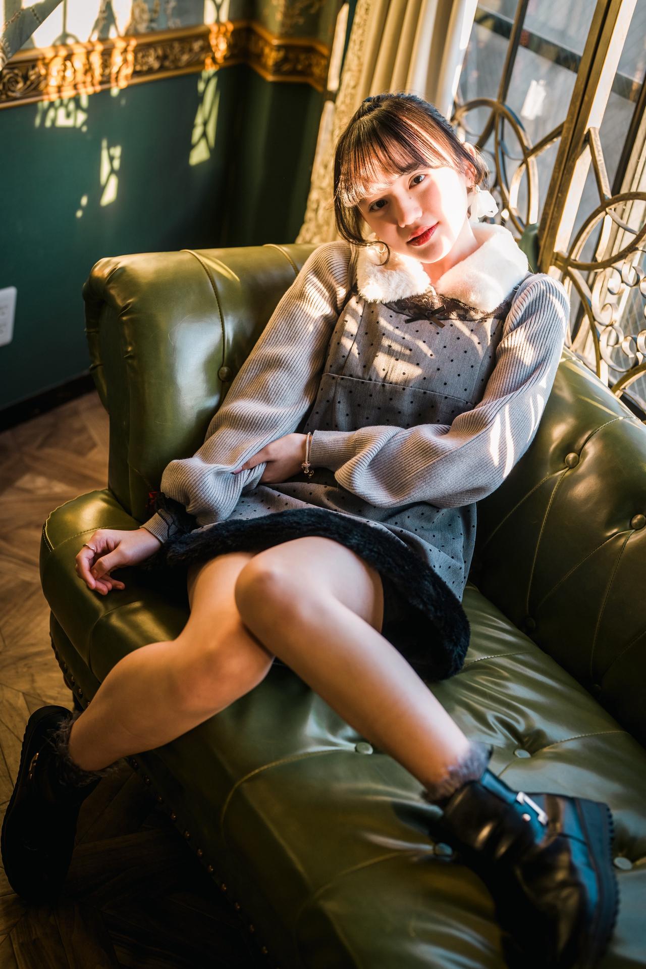 复古绿皮沙发上的少女,阳光洒进来的温暖时光。