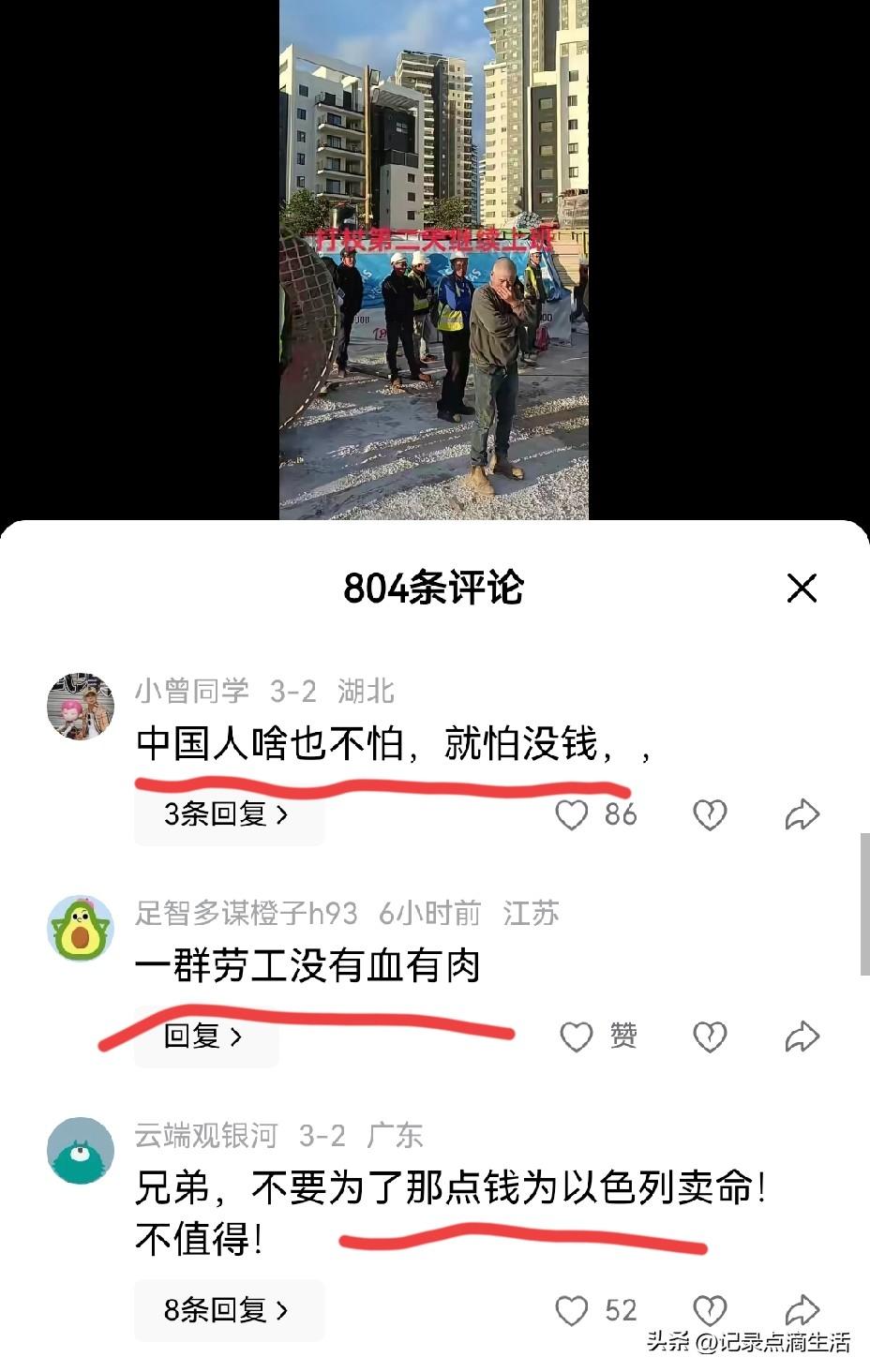 3月2日网传一段以色列遭空袭后,当地中国务工者仍坚持上班的视频,让不少网友心里五味杂陈。有人说他们“要钱不要命”,可真正懂的人都明白,这背后是普通人扛家计的无奈。 防空警报响起、远处有爆炸声,当地人往防空洞躲避,不少中国工友还是按点出门上工。不是不怕,是工期不等人、工钱不等人,家里孩子学费、老人医药费、房贷车贷,都等着这份收入。 有工友被问怕不怕,笑着说怕也没用,活干不完就拿不到钱。嘴上说得轻松,走在工地上谁不心里发紧?只是怕穷、怕家人失望、怕空手回家,比怕危险更实在。 他们手机里存着家人照片,每天收工第一件事就是报平安。漂洋过海到战乱地区打工,图的不是冒险,是给家里多挣一份安稳。 哪有什么真的不怕死,不过是肩上扛着责任,只能咬着牙往前走。我们隔着屏幕少点风凉话,多点理解与尊重。也愿在外打拼的同胞都平平安安,早日平安回家。