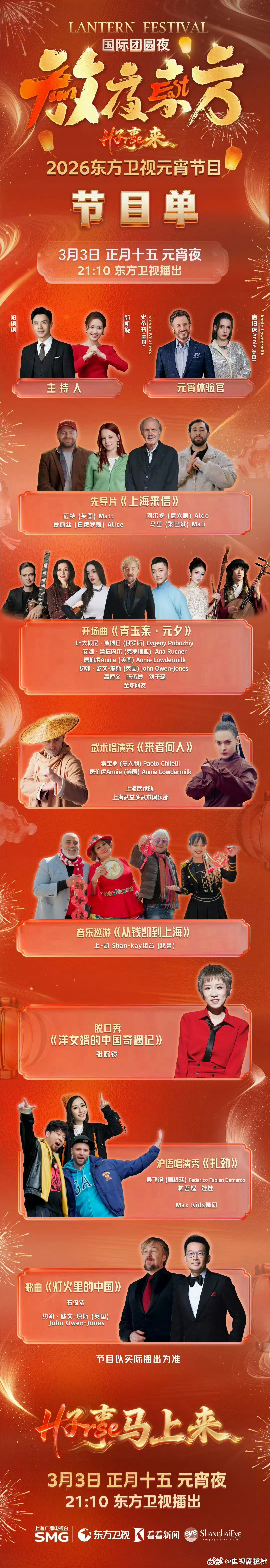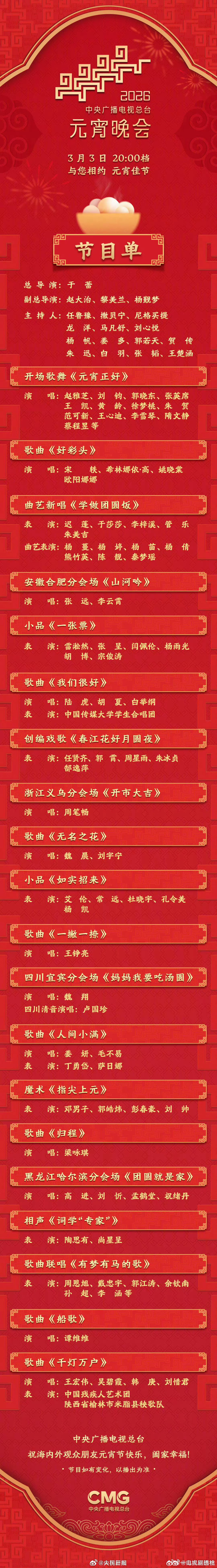 各卫视的元宵晚会节目单,今晚看哪个台?🧨央视 湖南 东方 江苏 广东 河南