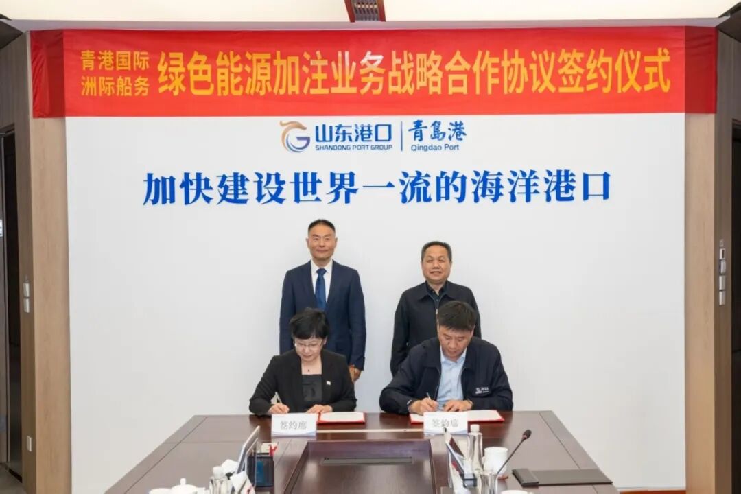 根据协议,双方将围绕合作改造的绿色甲醇加注船,开展租赁业务;在国内清洁能源加注市场信息、船舶运力租赁及技术管理领域开展深度合作。此次协议的签订,是青岛港积极响应国家“双碳”战略及高质量发展要求,深度融入新发展格局的关键落子,也是青岛港打造智慧绿色港口、全力加速国际航运中心建设的重要举措。