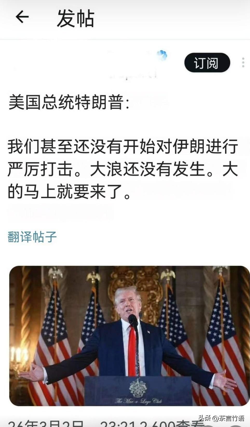 川普发文称,现在只是小试牛刀,真正对伊朗的打击准备开启! 这波打击将比以往更大!