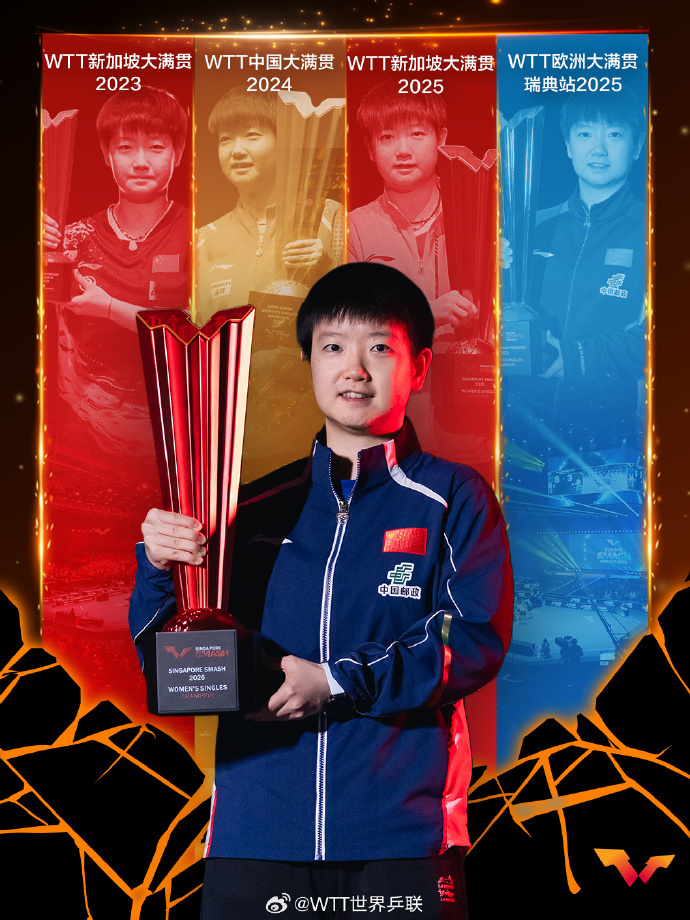 #孙颖莎王楚钦大满贯单打五冠王#孙颖莎、王楚钦双双成为WTT大满贯赛事单打五冠王