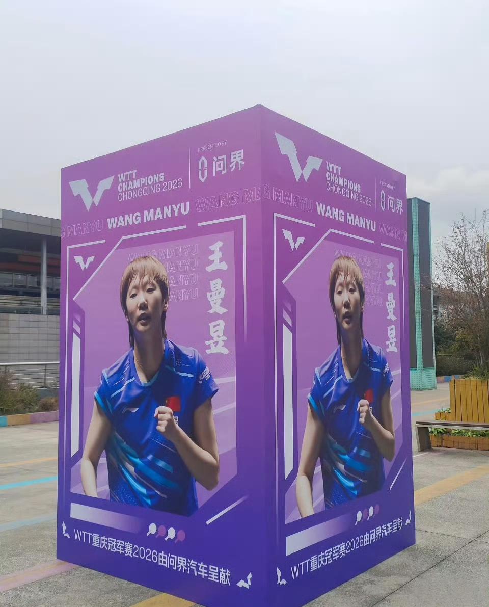 3月10日开启的WTT重庆冠军赛场馆已经在装修中!比赛场馆外,王曼昱的大海报也上线啦! 这照片选的不错,清爽金发小鱼妹,劲头十足! 距离比赛开始还有一个星期,曼昱先好好休息几天,养好身体,储存好精力和体力,咱们重庆再战!