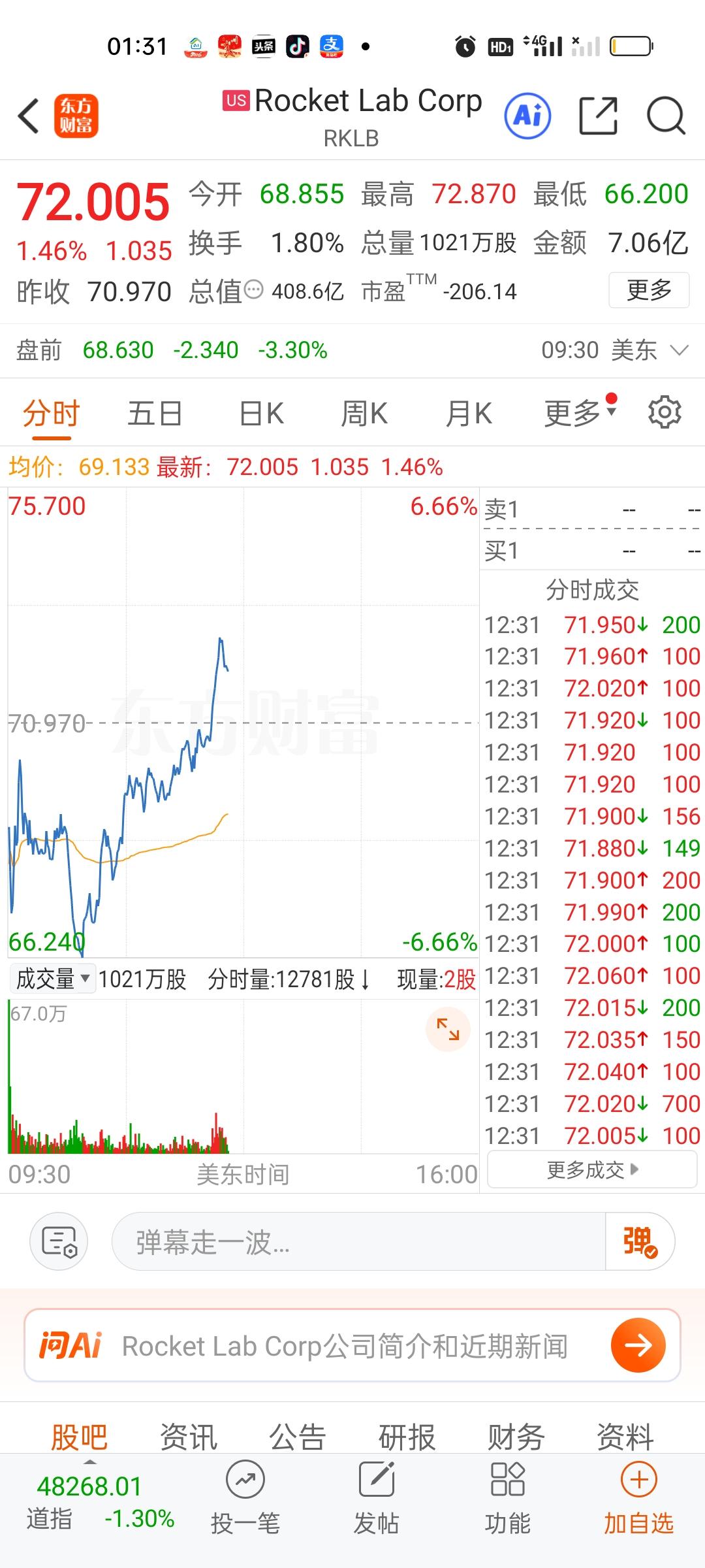 美股商业航天个股涨幅还可以,存储芯片板块核心个股尽管盘中拉升了一些,但跌幅依旧比