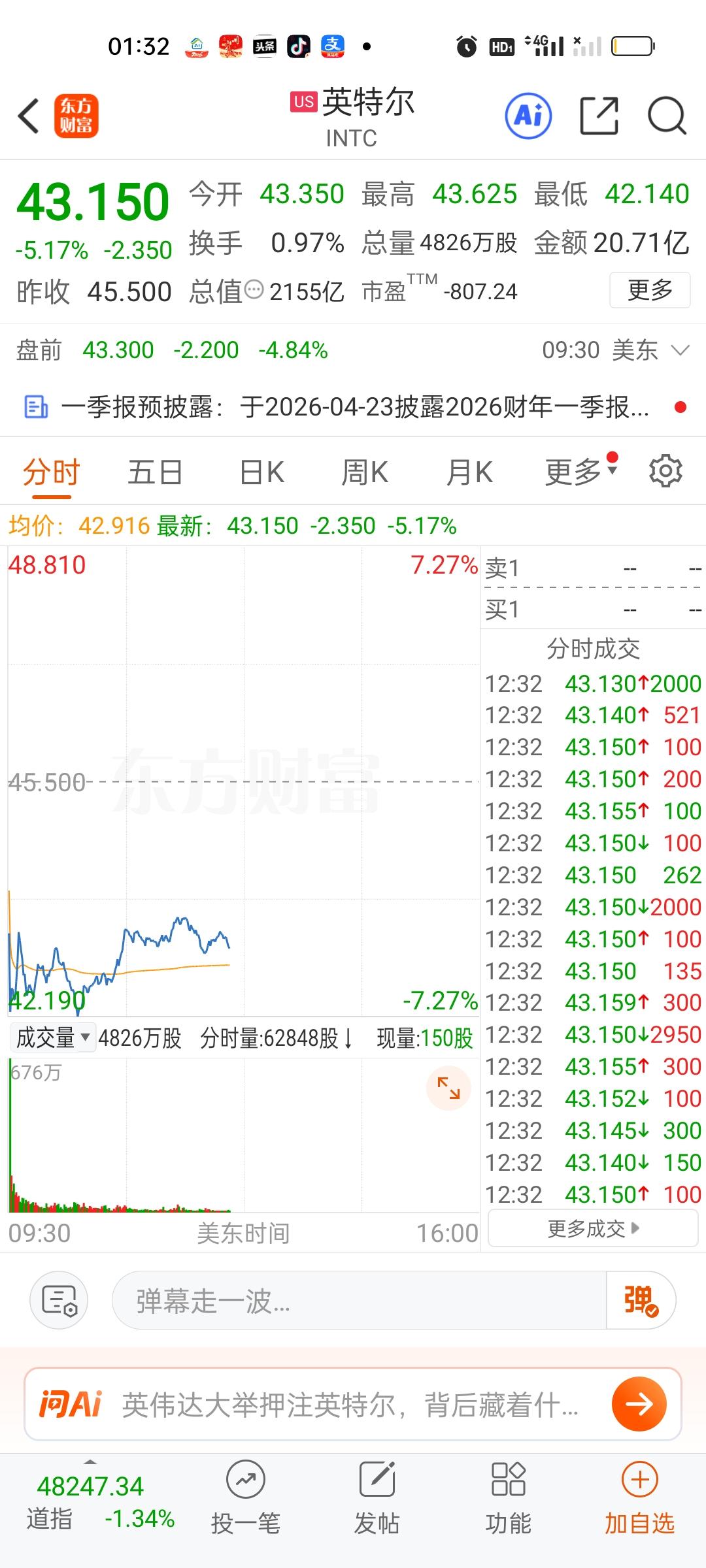 美股商业航天个股涨幅还可以,存储芯片板块核心个股尽管盘中拉升了一些,但跌幅依旧比较大。英伟达,特斯拉,英特尔跟跌。