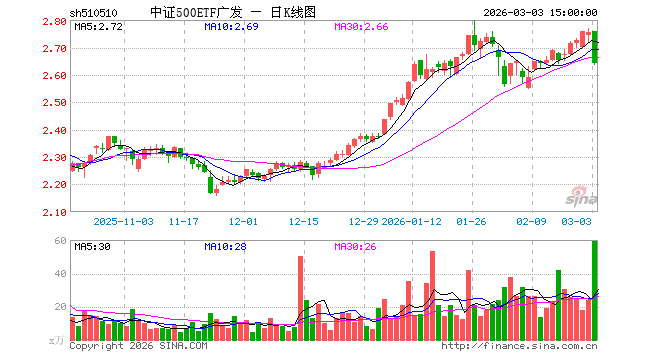3月3日,中证500ETF广发(510510)跌4.21%,成交额1.59亿元。当日份额减少2400.00万份,最新份额为9.93亿份,近20个交易日份额增加4000.00万份。最新资产净值计算值为26.20亿元。