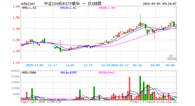 3月4日,中证500成长ETF银华(562340)开盘跌0.77%,报1.409元。中证500成长ETF银华(562340)重仓股方面,巨人网络开盘跌1.11%,西部矿业跌3.88%,天山铝业涨1.87%,厦门钨业跌7.25%,通富微电跌1.77%,宏发股份跌1.34%,杰瑞股份跌2.01%,睿创微纳跌1.61%,豪迈科技跌1.21%,金诚信跌1.74%。