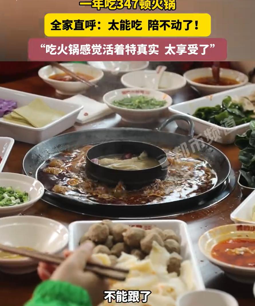这得是多大的瘾啊?河南郑州,一男子酷爱吃火锅,不仅自己吃,还喜欢拉着家人一起吃,最夸张的是一年365天,他曾吃过347顿,平均下来就是一天一顿。网友:真有钱啊! 男子介绍,不光自己吃,还热衷拉着家里人一起享用。一开始家人还挺乐意,毕竟火锅嘛,谁不爱?可时间长了,问题就来了 再好吃的东西,也架不住天天吃。家里人从最初的积极响应,到后来的面露难色,再到最后的直接拒绝,陪不动了,真陪不动了 说起来,火锅这东西确实神奇。不管是重庆的九宫格,还是北京的铜锅涮肉,甚至是潮汕的牛肉锅,它们有个共同点,平等。不管你什么身份,坐在火锅前都得自己涮、自己捞。牛肉卷下去几十秒,毛肚七上八下,大家都是一个流程 但话说回来,一年347顿,这已经不是爱好了,是执念 仔细想想,男子坚持的也许不只是火锅本身,而是一种仪式感。一家人能整整齐齐坐下来吃顿饭的时间越来越少。火锅恰好提供了这样一种场景:不用谁在厨房忙得满头大汗,不用讲究什么摆盘技巧,菜倒进去,熟了就能吃。重要的是大家围坐在一起的那个氛围 不过话说回来,凡事过犹不及。再美好的东西,一旦变成每日必修课,味道就变了。家人从享受变成忍受,从陪伴变成应付,那性质就变了 男子1年吃347顿火锅 全家都陪不动了