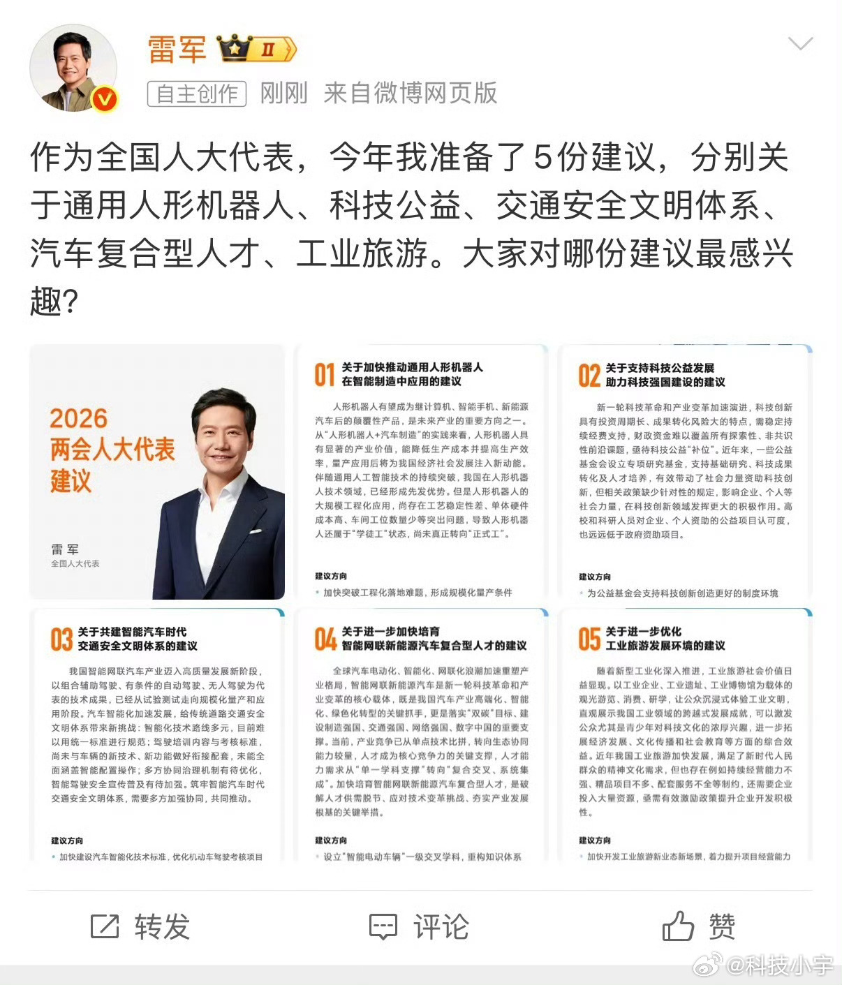 这不仅是小米的野望,更是中国在全球人工智能竞赛中抢占制高点的重要布局。当"铁大"们真正走进寻常百姓家,我们迎来的将不只是生活方式的变革,更是一个万亿级智能产业的崛起。雷军建言加快人形机器人规模化量产