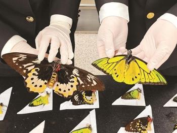 台海网3月4日讯(记者孙春燕通讯员王梦可文/图)昨日,经专业机构鉴定,厦门海关此前在进境旅客行李中截获的43只蝴蝶标本均为鸟翼凤蝶属蝴蝶标本,属于濒危物种制品,这是该关近年来在旅检渠道查获的最大一起濒危蝴蝶制品进境情事。