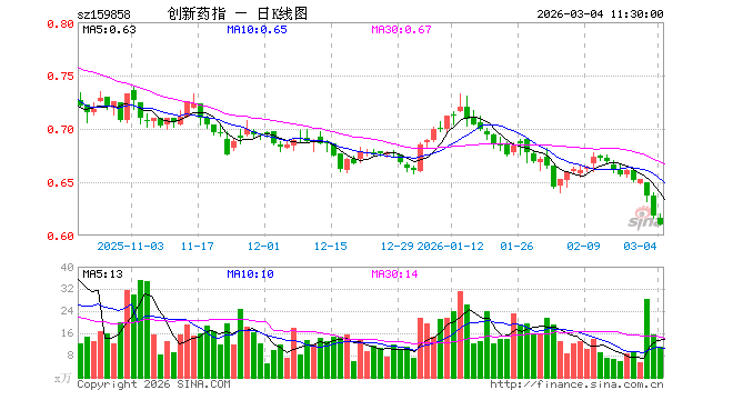 3月4日,截止午间收盘,创新药ETF南方(159858)跌1.29%,报0.610元,成交额682.51万元。创新药ETF南方(159858)重仓股方面,药明康德截止午盘跌2.24%,恒瑞医药跌1.72%,华东医药跌1.62%,复星医药跌1.96%,科伦药业跌0.78%,百济神州跌2.80%,长春高新跌1.00%,康龙化成跌1.41%,泰格医药跌1.39%,艾力斯涨12.42%。
