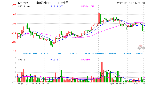 3月4日,截止午间收盘,物联网ETF(516330)跌0.56%,报1.412元,成交额17.96万元。物联网ETF(516330)重仓股方面,中际旭创截止午盘跌3.95%,立讯精密跌3.08%,汇川技术跌1.68%,兆易创新涨3.05%,美的集团跌1.35%,中兴通讯涨0.08%,科大讯飞跌1.28%,海康威视跌0.26%,豪威集团跌2.22%,海尔智家跌3.51%。