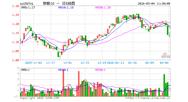 3月4日,截止午间收盘,物联网ETF招商(159701)跌0.70%,报1.131元,成交额5.41万元。物联网ETF招商(159701)重仓股方面,中际旭创截止午盘跌3.95%,立讯精密跌3.08%,汇川技术跌1.68%,兆易创新涨3.05%,美的集团跌1.35%,中兴通讯涨0.08%,科大讯飞跌1.28%,海康威视跌0.26%,豪威集团跌2.22%,海尔智家跌3.51%。